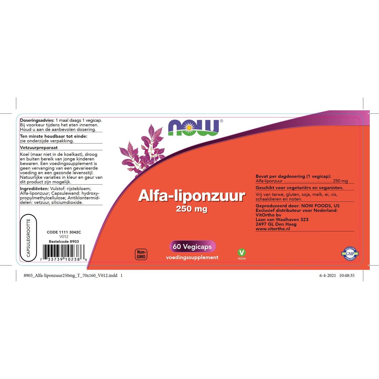 NOW Alfa-Liponzuur 250 mg 60 vcaps