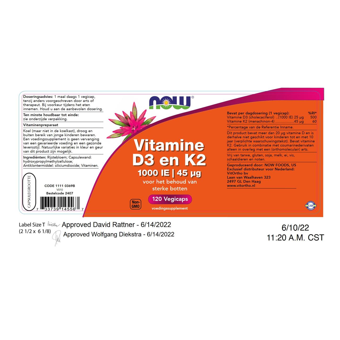 NOW Vitamine D3 1000 IE en Vitamine K2 45 mcg 120 vcaps