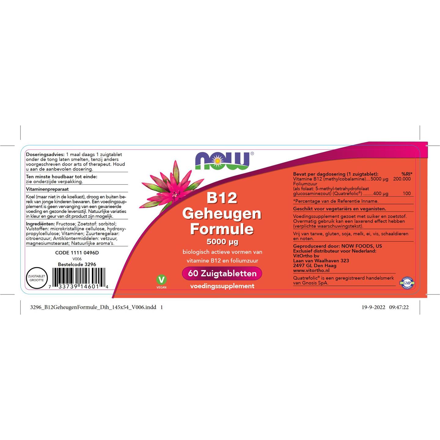 NOW B12 Geheugen Formule 5000 mcg 60 zuigtab