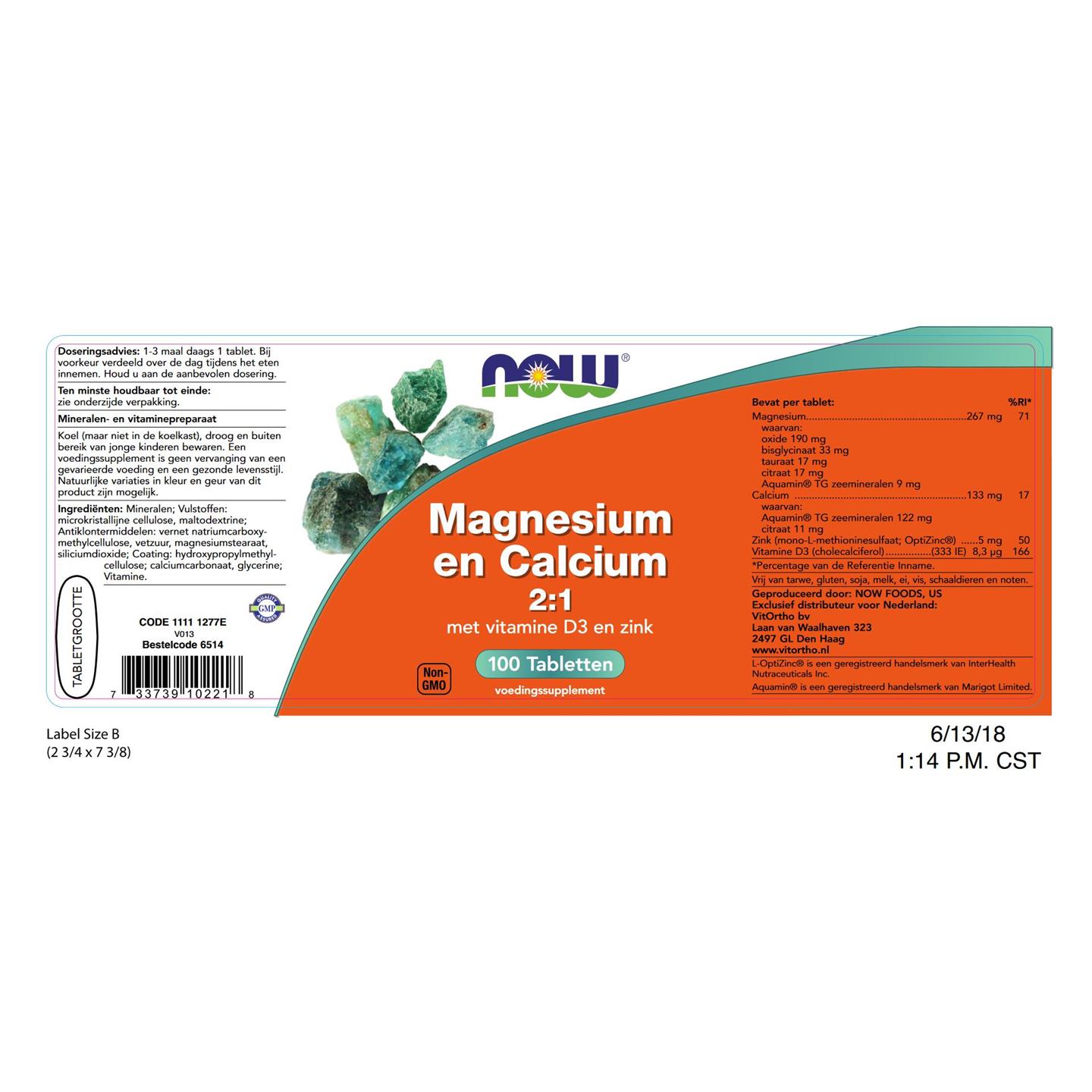NOW Magnesium en Calcium 2:1 100 tab