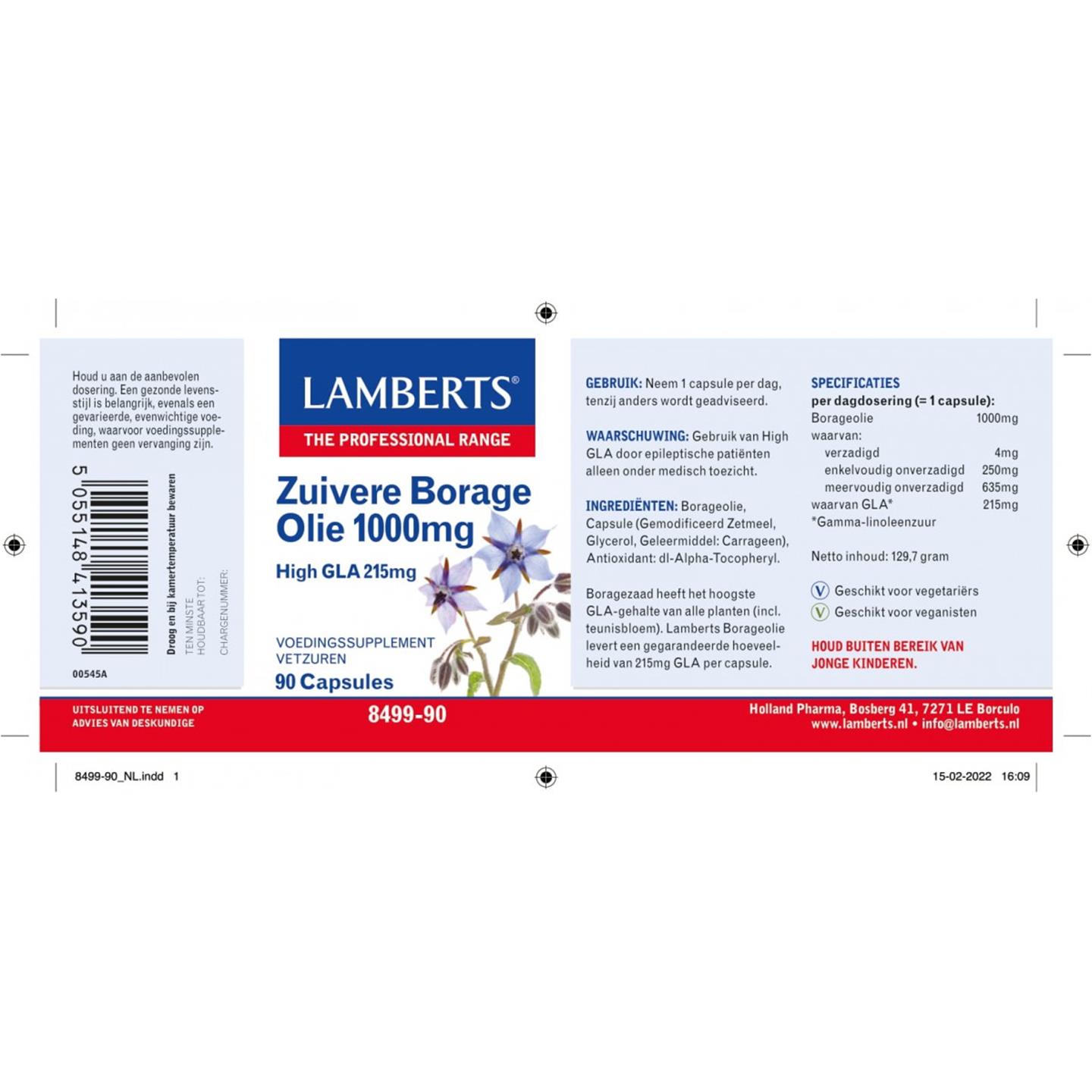 Borage olie, Capsule (Gemodificeerd zetmeel, Glycerol, Geleermiddel: Carrageen), Antioxidant (Dl-alfa-tocoferyl).