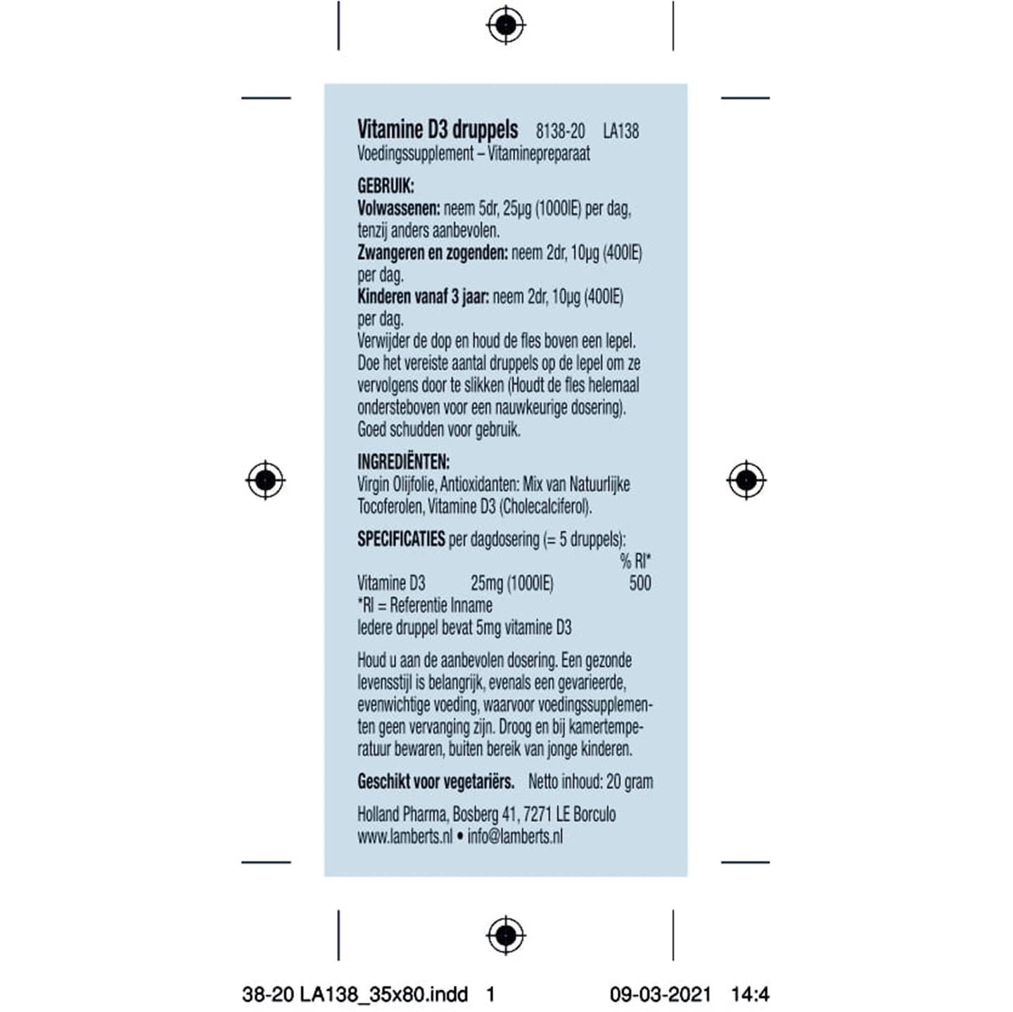 Volwassenen: neem 5 druppels, 25 mcg (1000 IE) per dag, tenzij anders geadviseerd.
