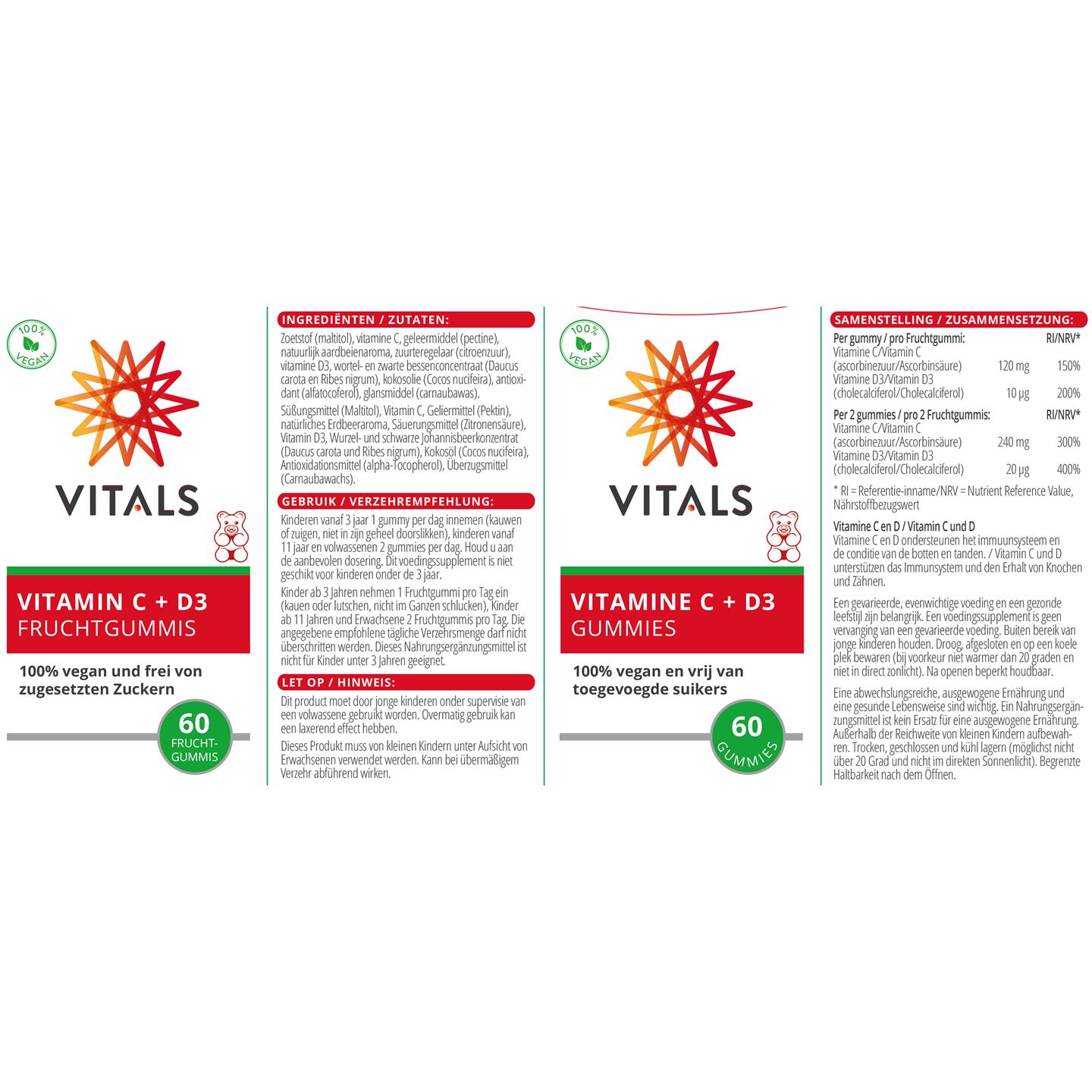 Maltitol, Vitamine C, Geleermiddel (Pectine), Natuurlijk aardbeienaroma, Zuurteregelaar (Citroenzuur), Vitamine D3, Wortel- en zwarte bessenconcentraat (Daucus carota en Ribes nigrum), Kokosolie (Cocos nucifera), Antioxidant (Carnaubawas).