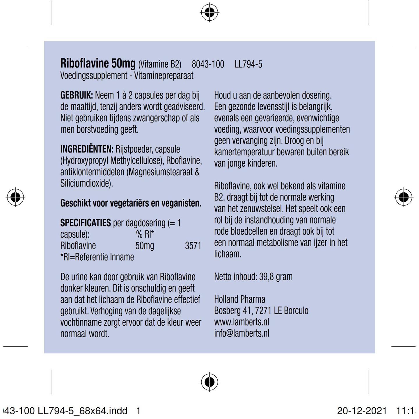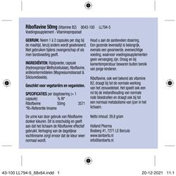Rijstpoeder, Capsule (Hydroxypropylmethylcellulose), Vitamine B2 (riboflavine), Antiklontermiddelen (Magnesiumstearaat, Siliciumdioxide).