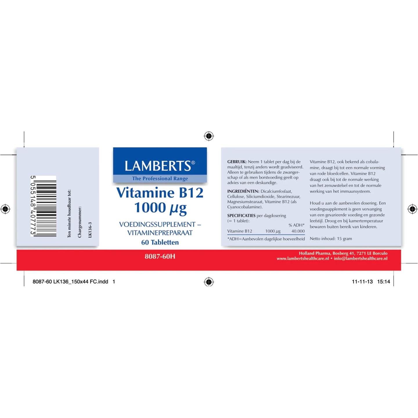 Lamberts Vitamine B12 1000 mcg (als Cyanocobalamine) 60 tab