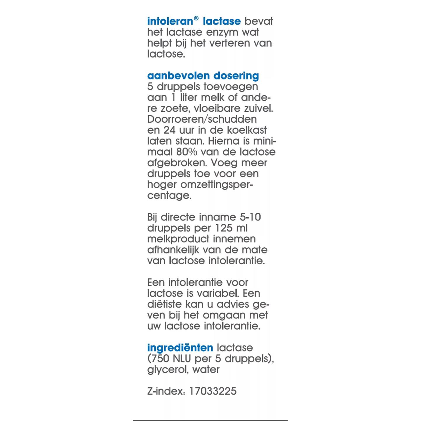 Bij directe inname 5-10 druppels per 125 ml melkproduct innemen afhankelijk van de mate van lactose intolerantie.