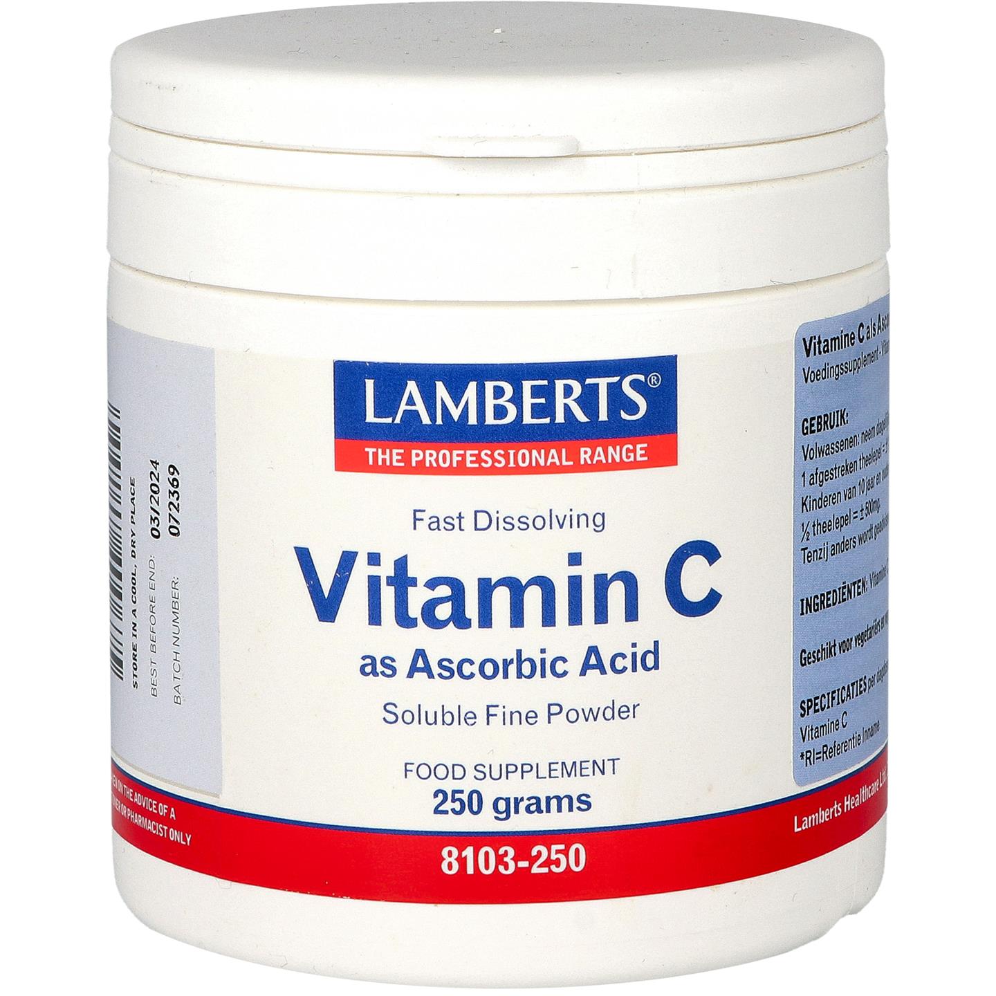 Lamberts Vitamine C als ascorbinezuur 250 gram