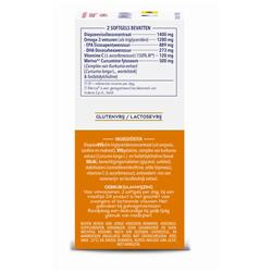 Diepzeevisolie-TG-concentraat (uit ansjovis, sardine en makreel) (Vis), Visgelatine (Vis), Kurkuma (Curcuma longa) wortelstok extract en Fosfatidylcholine-complex (Soja), Bevochtigingsmiddel (Glycerol), Stabilisatoren (Zonnebloemlecithine, Witte bijenwas), Vitamine C (ascorbinezuur), Antioxidant (Mix van rozemarijn- en tocoferolrijk extract).