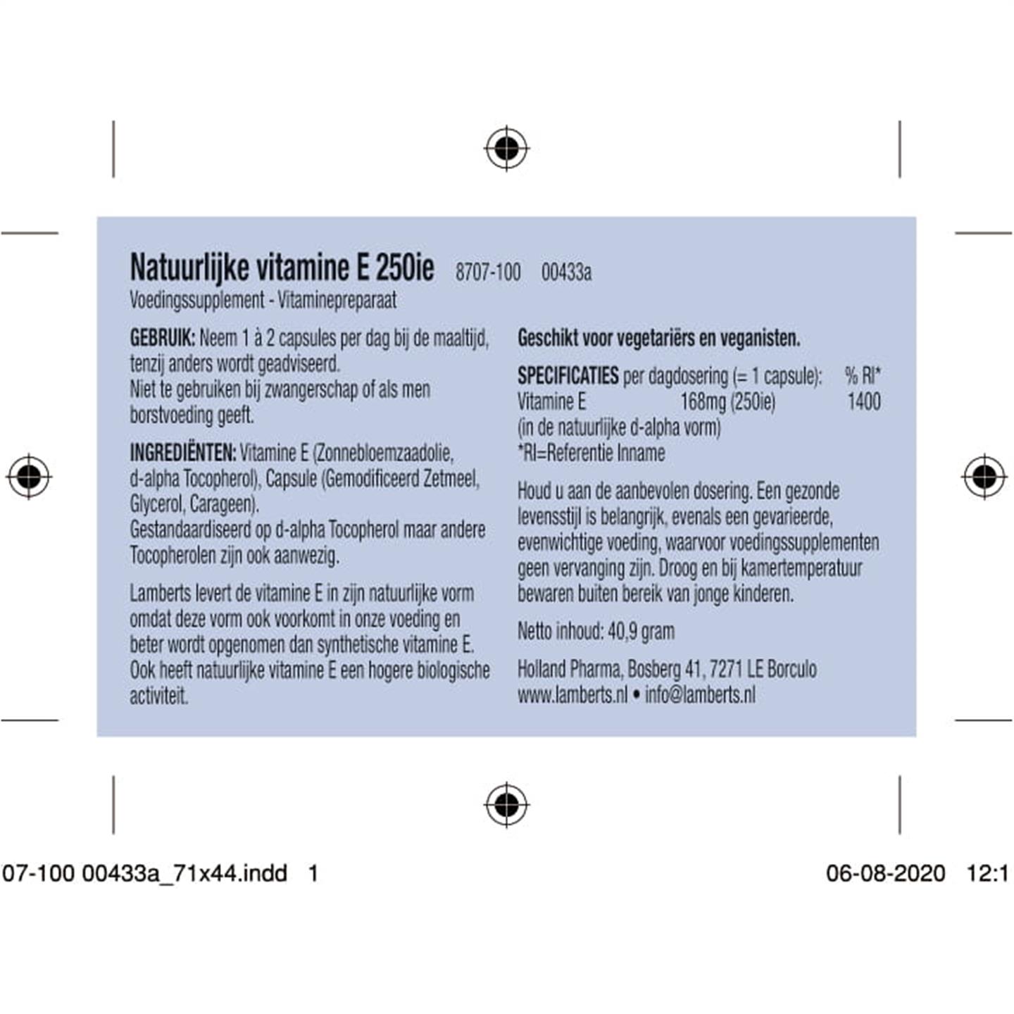 Lamberts Vitamine E 250 IE 100 caps