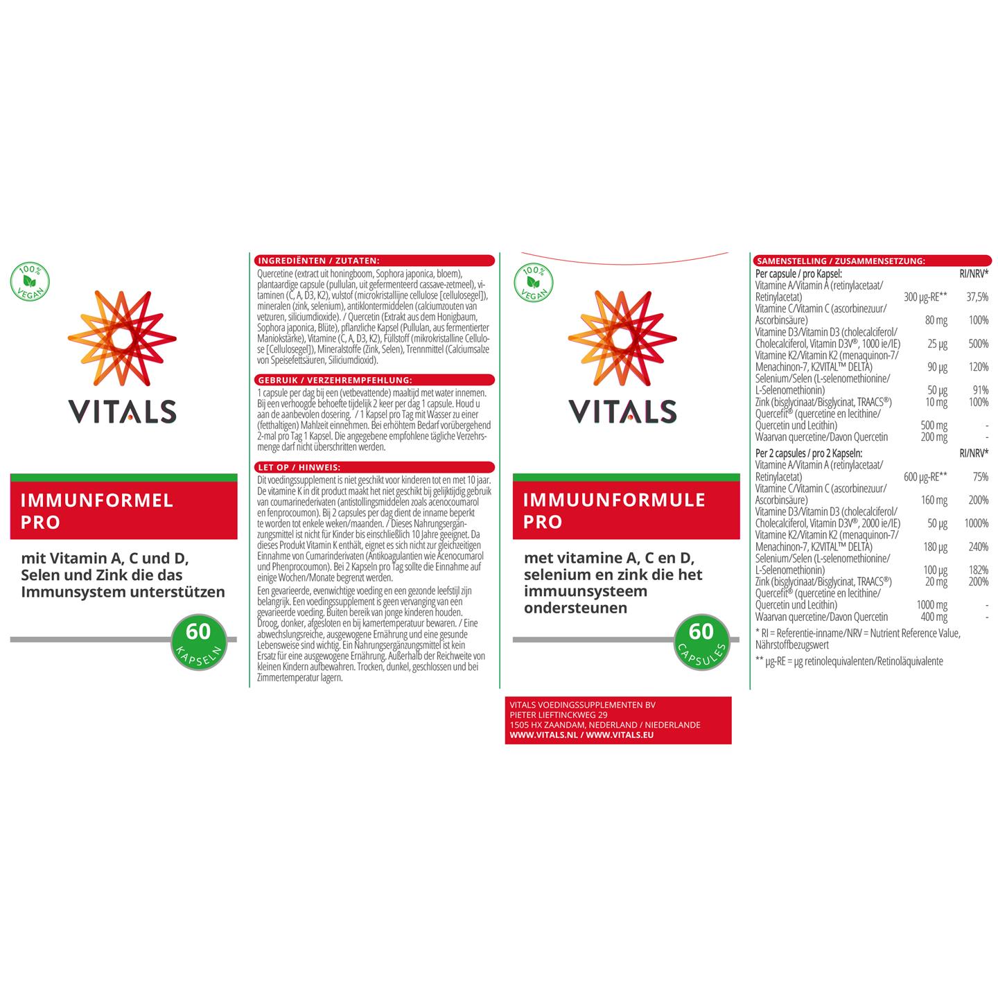 Quercetine (extract uit honingboom (Sophora Japonica)), Vegetarische capsule (Pullulan, uit gefermenteerd cassave-zetmeel), Vitaminen, Mineralen, Antiklontermiddelen (Calciumzouten van vetzuren, Siliciumdioxide), Vulstof (Microkristallijne cellulose (cellulosegel)).