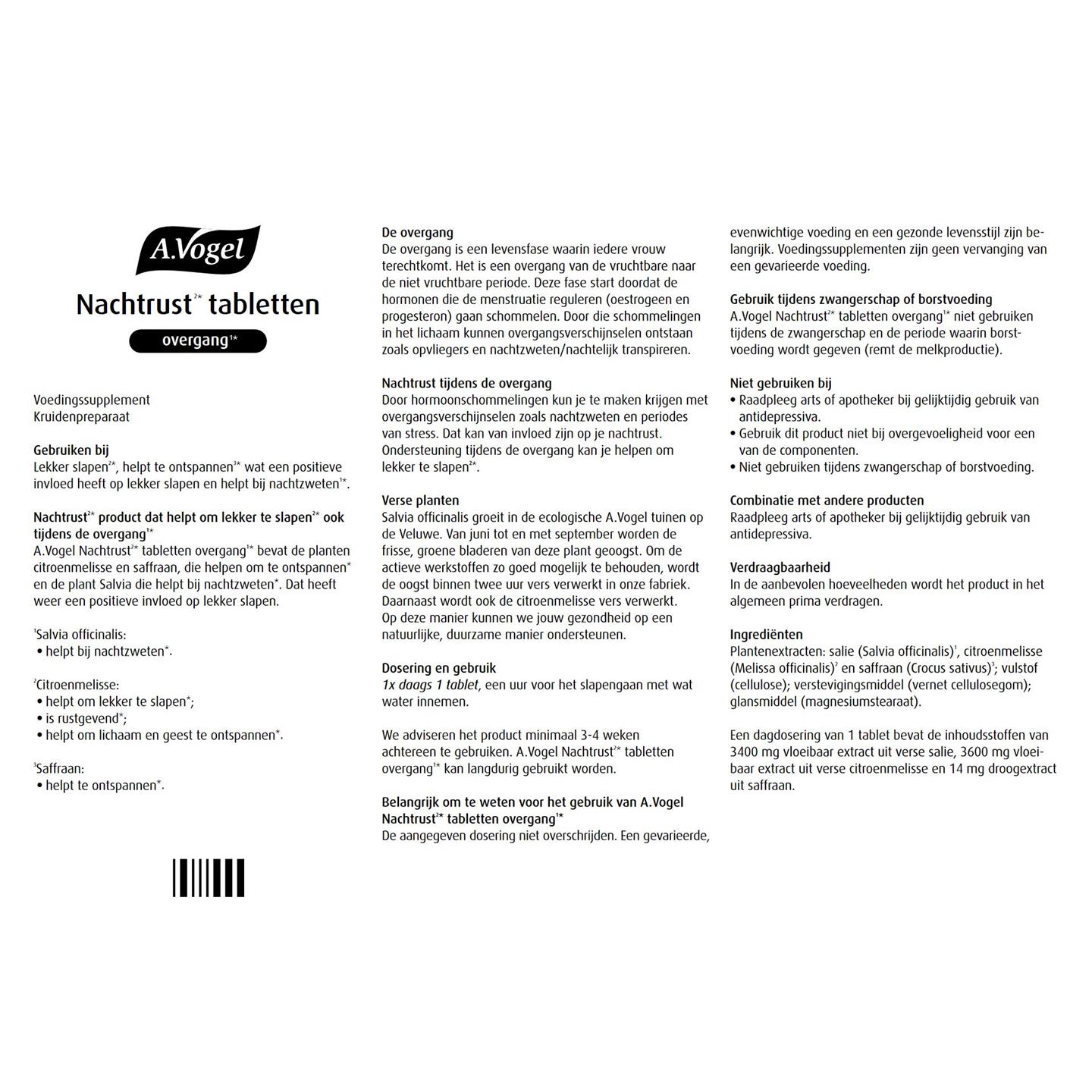 Nachtrust tabletten overgang niet gebruiken tijdens de zwangerschap en de periode waarin borstvoeding wordt gegeven (remt de melkproductie).