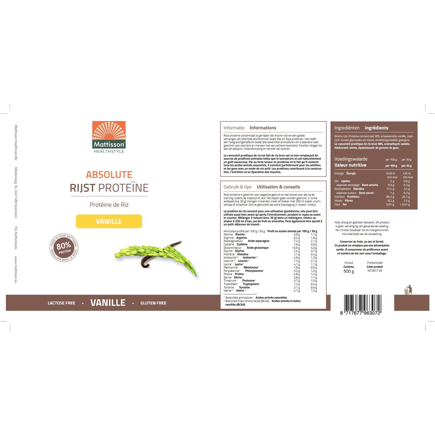 Mattisson Rijst Proteïne Vanille 500 gram