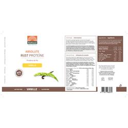 Bruine rijst proteïne concentraat (98%), Smaakaroma (Vanille), Zoetstof (Steviol glycosides uit stevia), Verdikkingsmiddel (Guargom).