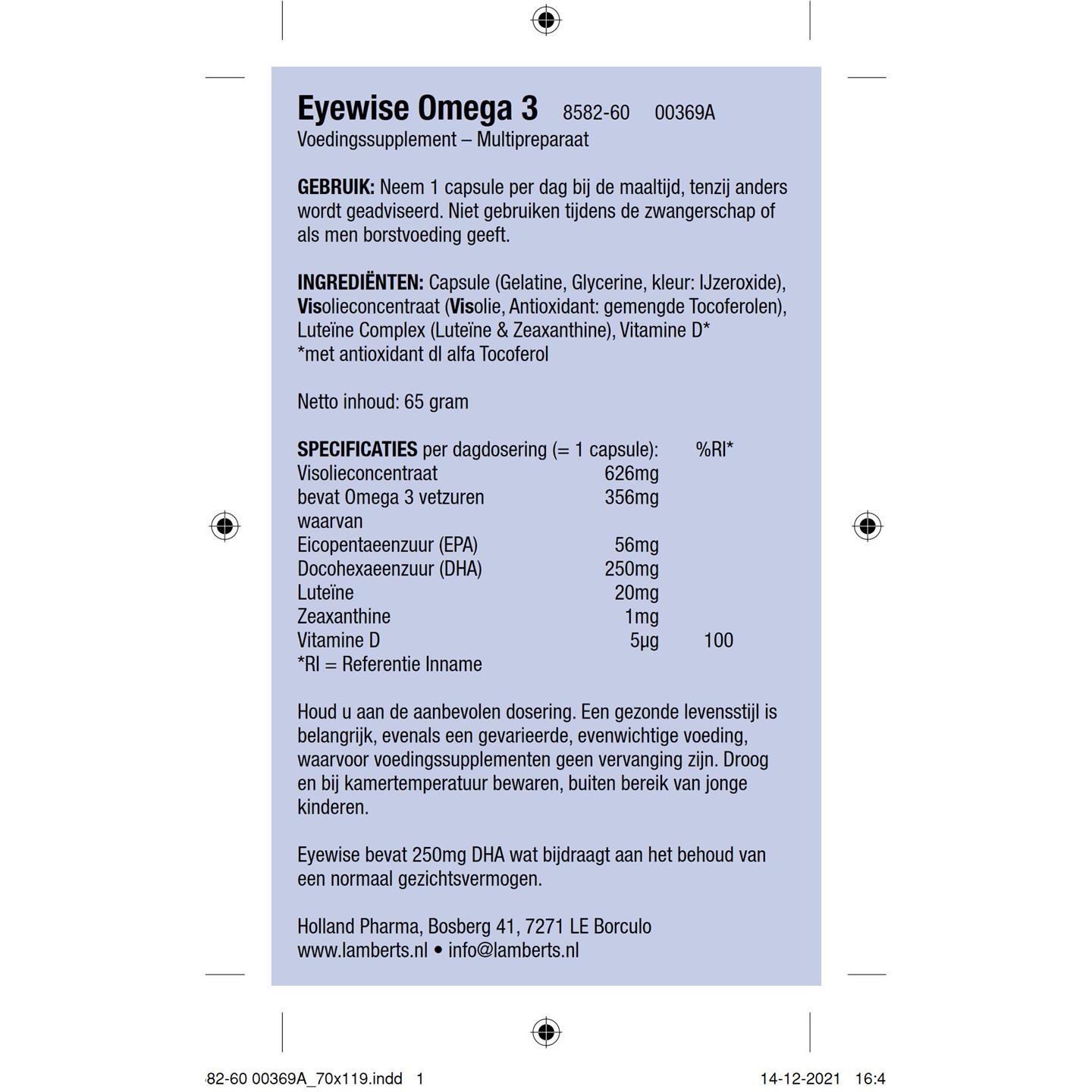 Capsule (Gelatine, Glycerine, Kleurstof: IJzeroxide), Visolieconcentraat ((Vis), Antioxidant: Gemengde tocoferolen), Luteïne complex (Luteïne, Zeaxanthine), Vitamine D (Antioxidant: Dl-alfatocoferol).