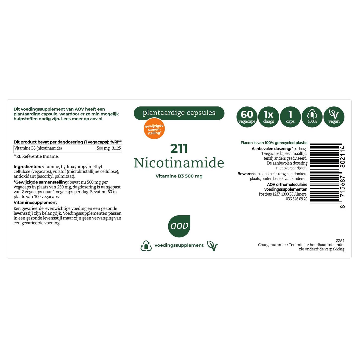 Vitamine B3 (nicotinamide), Veganistische capsule (Hydroxypropylmethylcellulose), Vulstof (Microkristallijne cellulose), Antioxidant (Ascorbylpalmitaat).