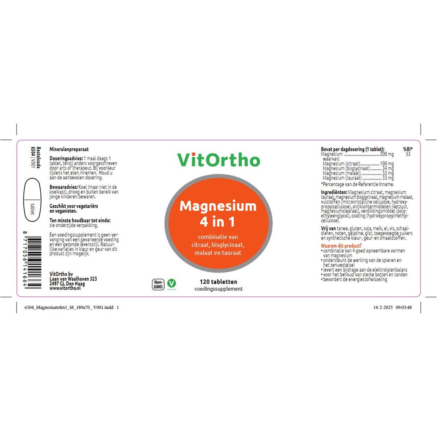 Magnesiumcitraat, Magnesiumtauraat, Magnesiumbisglycinaat, Magnesiummalaat, Vulstoffen (Microkristallijne cellulose, Hydroxypropylcellulose), Antiklontermiddelen (Vetzuur, Magnesiumstearaat), Verdikkingsmiddel (Polyethyleenglycol), Coating (Hydroxypropylmethylcellulose).