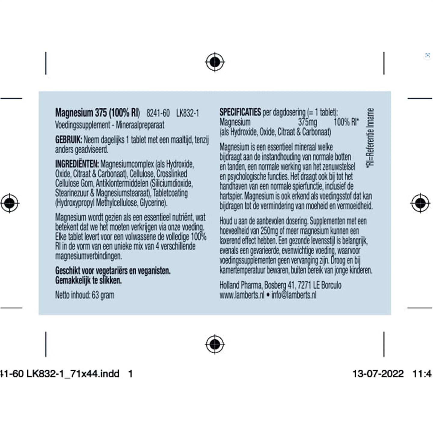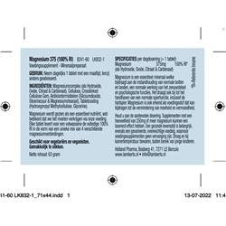 Magnesiumcomplex (carbonaat, citraat, hydroxide, oxide), Cellulose, Crosslinked cellulose gom, Antiklontermiddelen (Siliciumdioxide, Stearinezuur, Magnesiumstearaat), Tabletcoating (Hydroxypropylmethylcellulose, Glycerine).