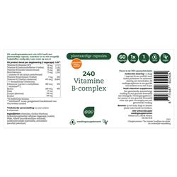 Vitaminen, Cholinebitartraat, Veganistische capsule (Hydroxypropylmethylcellulose), Inositol, PABA, Vulstof (Microkristallijne cellulose), Antiklontermiddel (Rijstvezels), Antioxidant (Ascorbylpalmitaat).