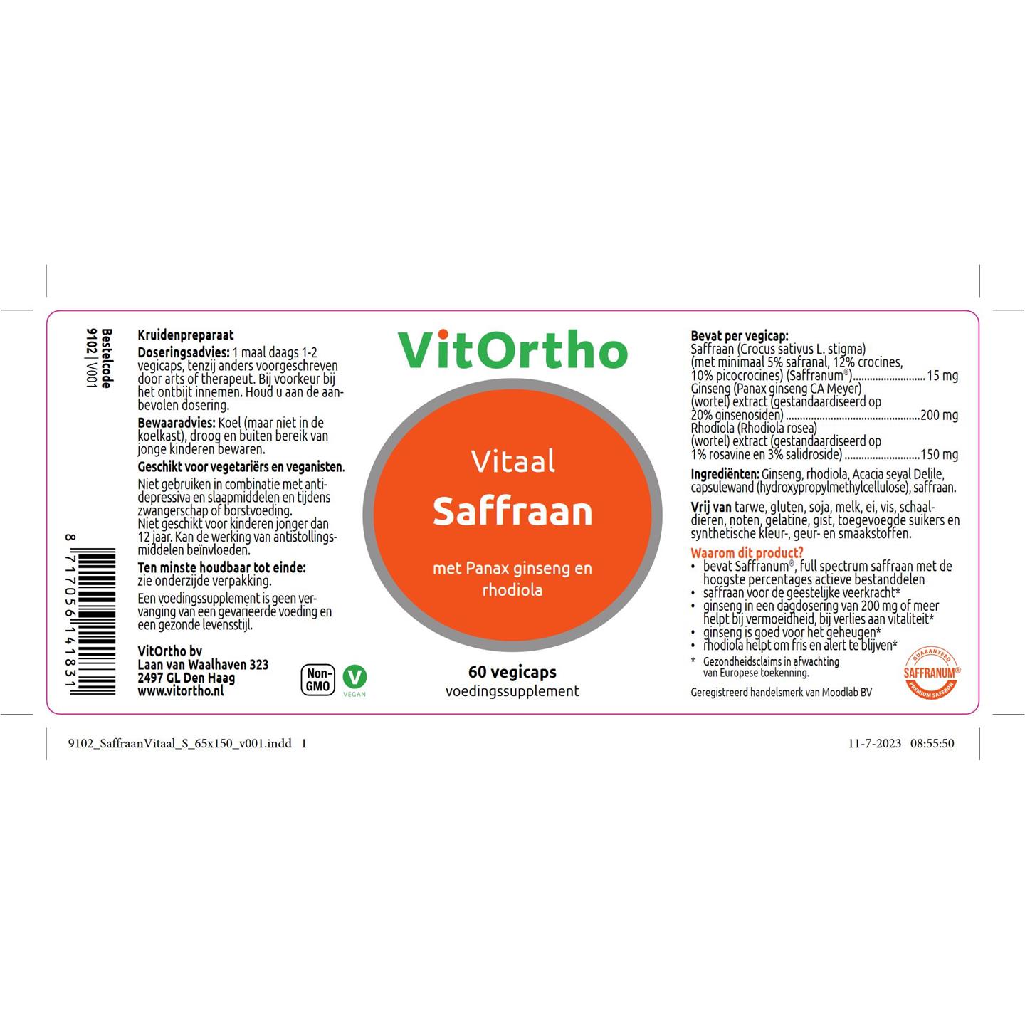 Ginseng (Panax ginseng) wortel extract, Rhodiola (Rhodiola rosea) wortel extract, Acacia seyal Delile, Capsule (Hydroxypropylmethylcellulose), Saffraan (Crocus sativus L. stigma) (Saffranum®).