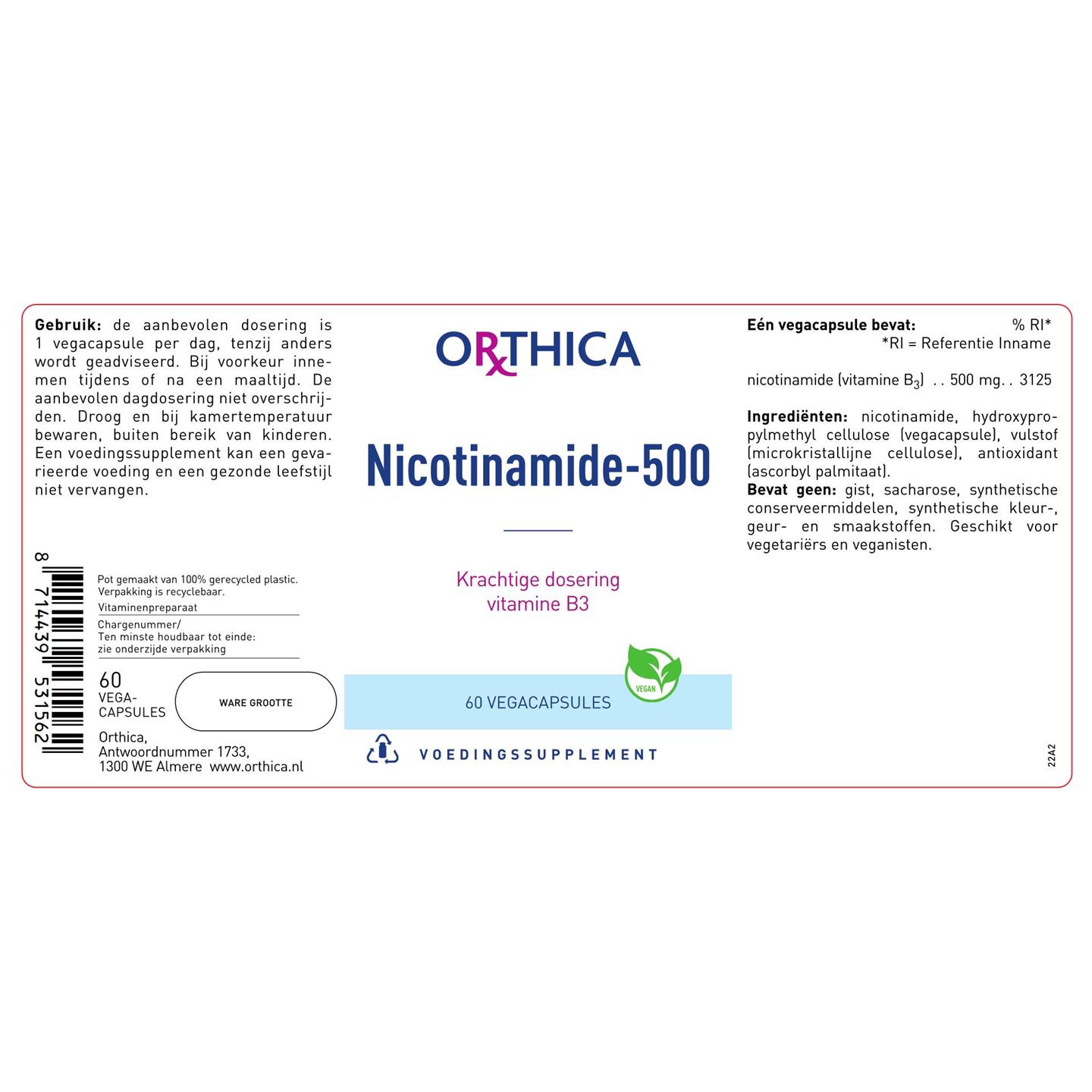 Vitamine B3 (nicotinamide), Veganistische capsule (Hydroxypropylmethylcellulose), Vulstof (Microkristallijne cellulose), Antioxidant (Ascorbylpalmitaat).