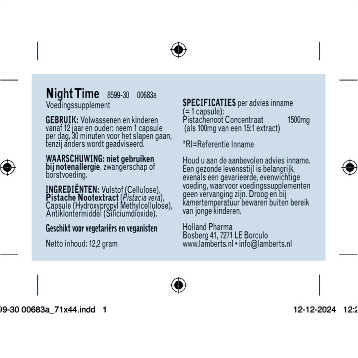 Vulstof (Cellulose), Pistache nootextract (Pistacia vera) (Noten), Capsule (Hydroxypropylmethylcellulose), Antiklontermiddel (Siliciumdioxide).