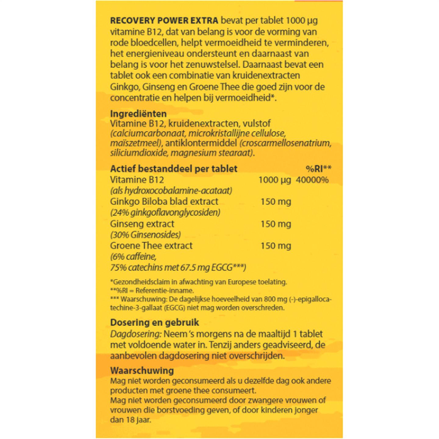 Vitamine B12 (hydroxocobalamine-acetaat), Kruidenextracten, Vulstoffen (Calciumcarbonaat, Microkristallijne cellulose, Maïszetmeel), Antiklontermiddelen (Croscarmellose natrium, Siliciumdioxide, Magnesiumstearaat).