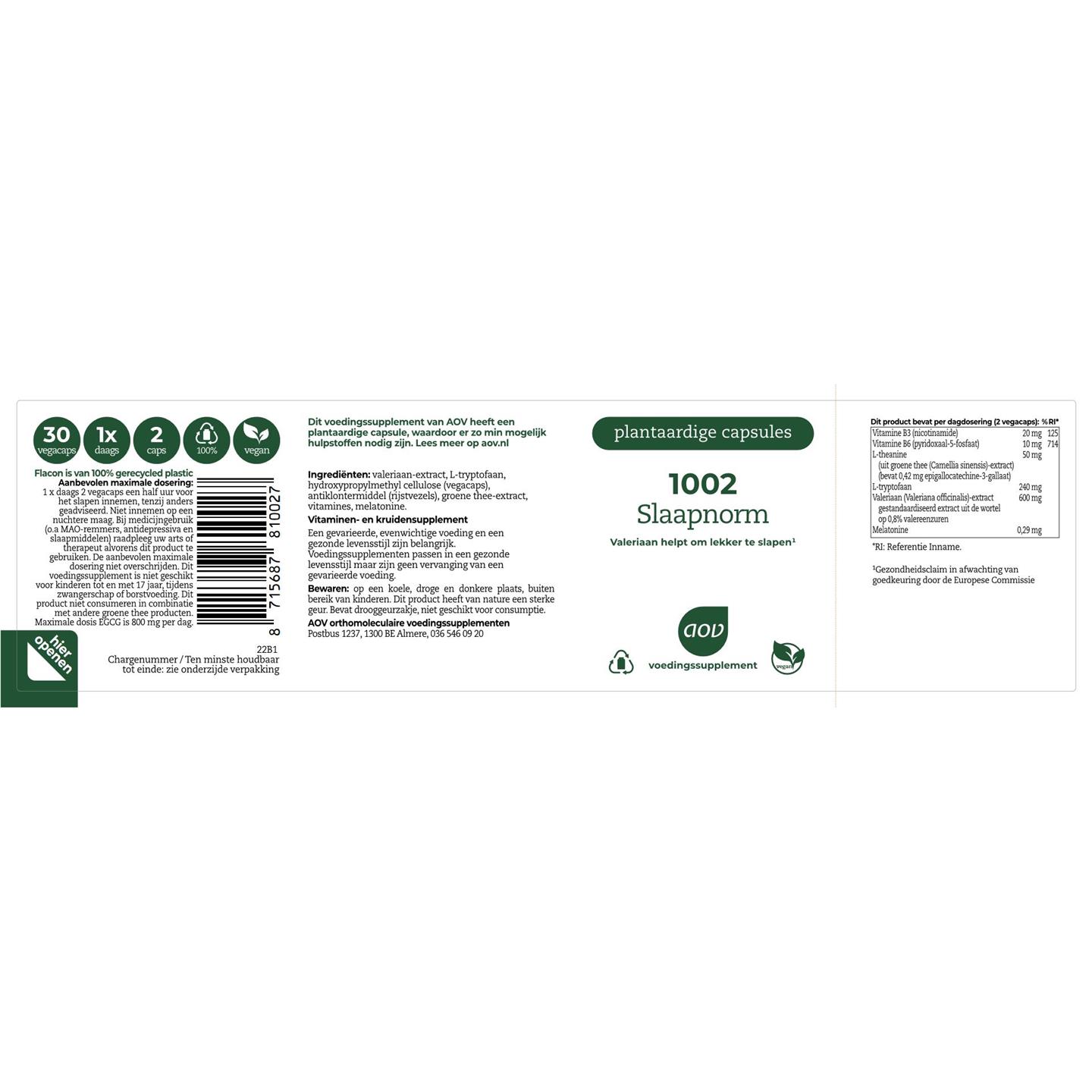 Valeriaan extract, L-Tryptofaan, Veganistische capsule (Hydroxypropylmethylcellulose), Antiklontermiddel (Rijstvezels), Groene thee extract, Vitaminen, Melatonine.