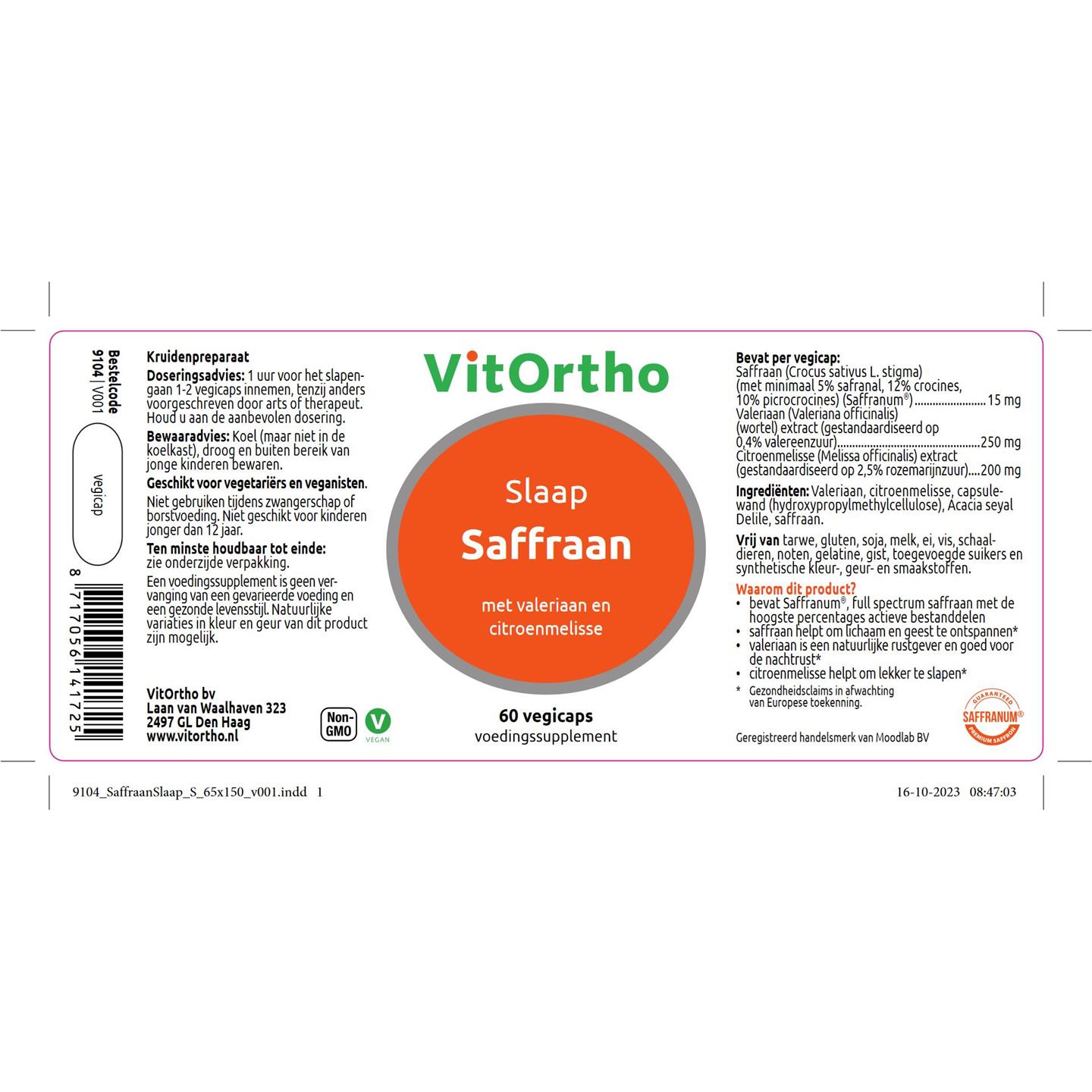 Valeriaan (Valeriana officinalis) wortel extract, Citroenmelisse (Melissa officinalis) extract, Capsule (Hydroxypropylmethylcellulose), Acacia seyal Delile, Saffraan (Crocus sativus L. stigma) (Saffranum®).