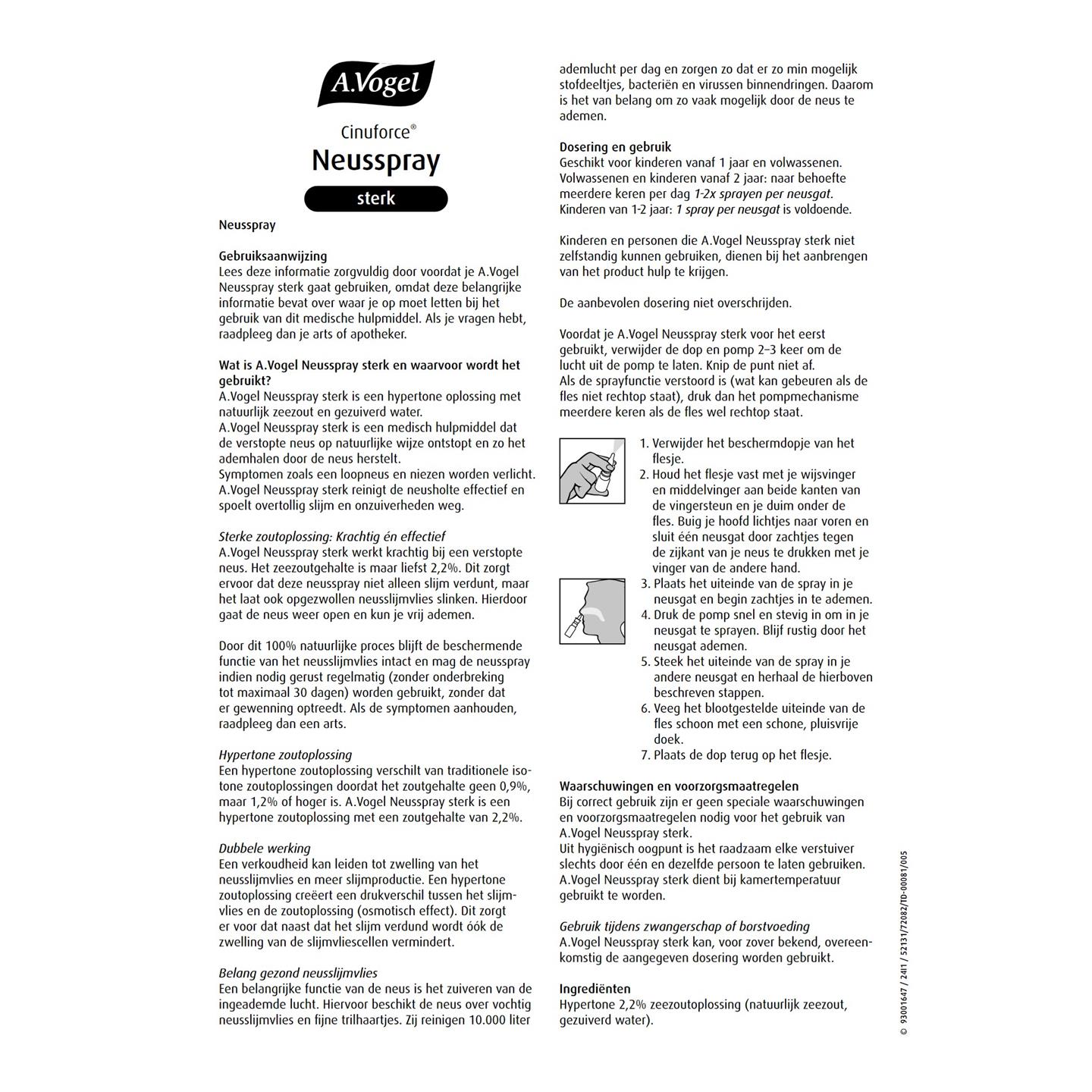 Volwassenen en kinderen vanaf 2 jaar: naar behoefte meerdere keren per dag 1-2 keer sprayen per neusgat.