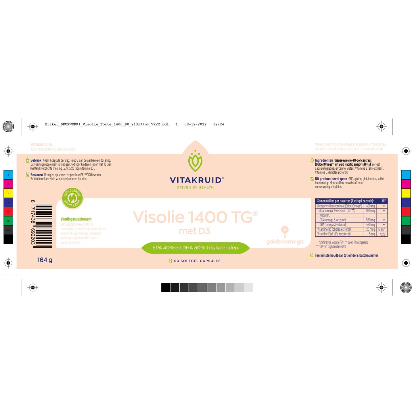 VitaKruid Visolie 1400 TG met D3 EPA 40%-DHA 30% 90 softgels