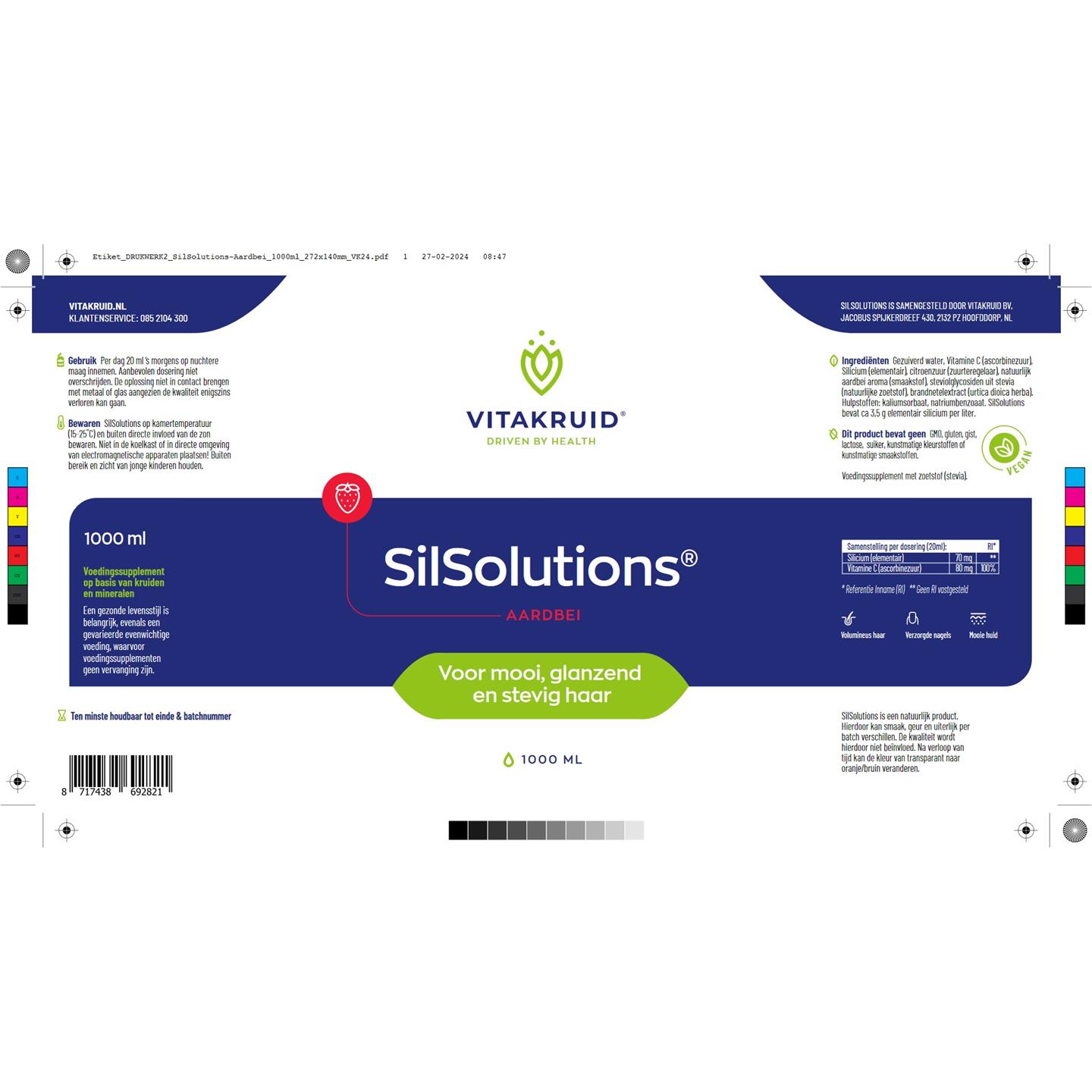 SilSolutions bevat circa 3,5 gram elementair silicium per liter. Voedingssupplement met zoetstof (stevia). SilSolutions is een natuurlijk product. Hierdoor kan smaak, geur en uiterlijk per batch verschillen. De kwaliteit wordt hierdoor niet beïnvloed. Na verloop van tijd kan de kleur van transparant naar oranje/bruin veranderen.
