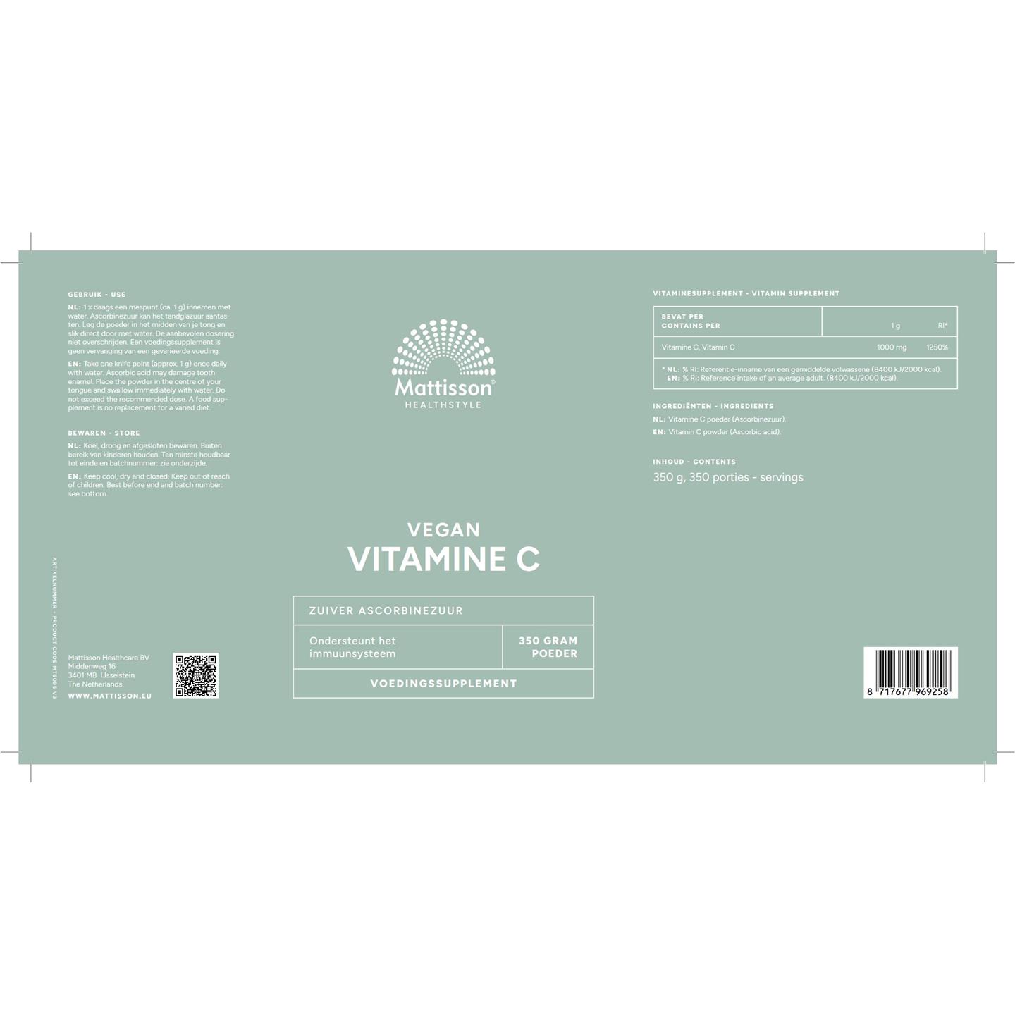 1 maal daags een mespuntje (circa 1 gram) innemen met water. Ascorbinezuur kan het tandglazuur aantasten. Leg de poeder in het midden van je tong en slik direct door met water. De aanbevolen dosering niet overschrijden.Allergenen informatie