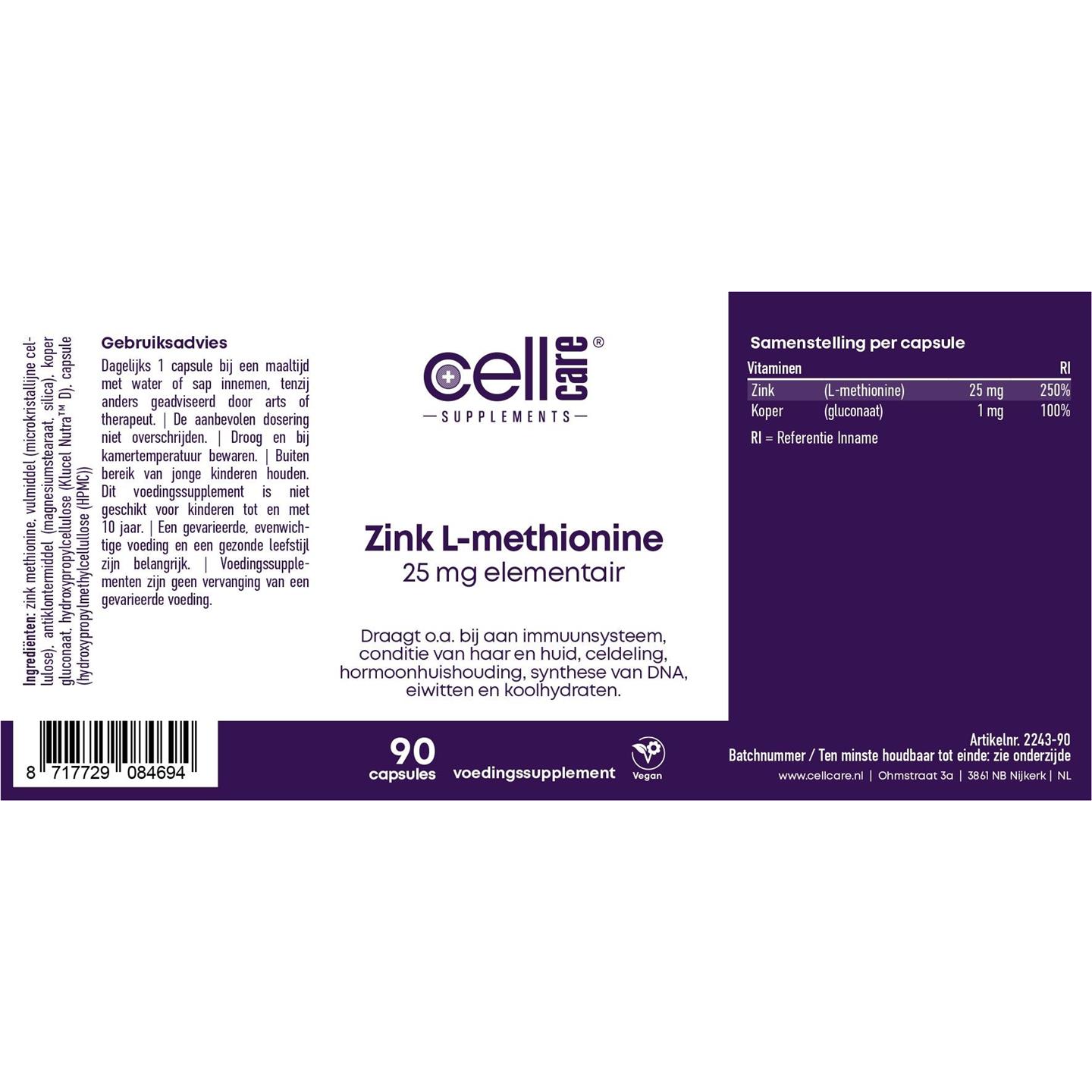 Zink methionine, Vulmiddel (Microkristallijne cellulose), Antiklontermiddel (Magnesiumsteraat, Silica), Koper gluconaat, Hydroxypropylcellulose (Klucel Nutra™ D), Capsule (Hydroxypropylmethylcellulose (HPMC)).