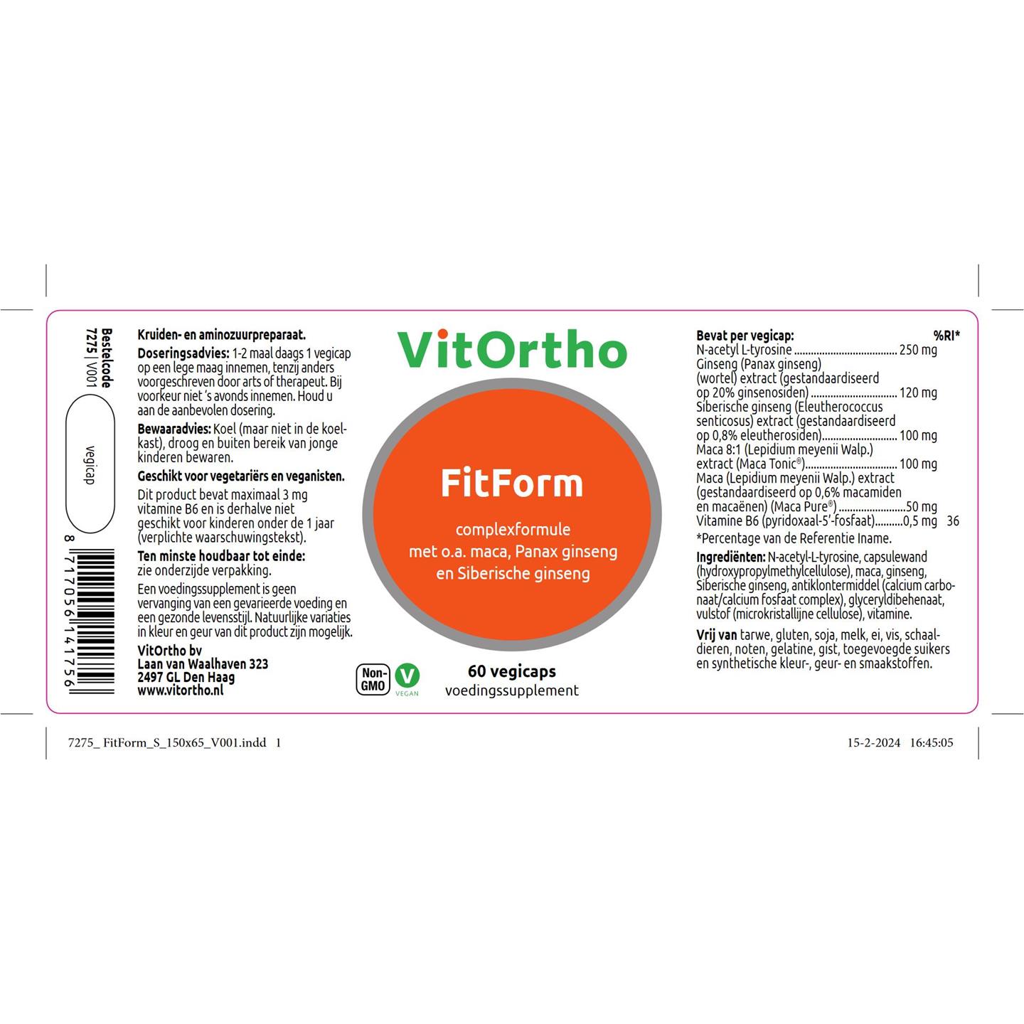 N-acetyl-L-tyrosine, Capsule (Hydroxypropylmethylcellulose), Maca extract, Ginseng extract, Siberische ginseng extract, Antiklontermiddel (Calcium carbonaat/calcium fosfaat complex), Glyceryldibehenaat, Vulstof (Microkristallijne cellulose), Vitamine B6.