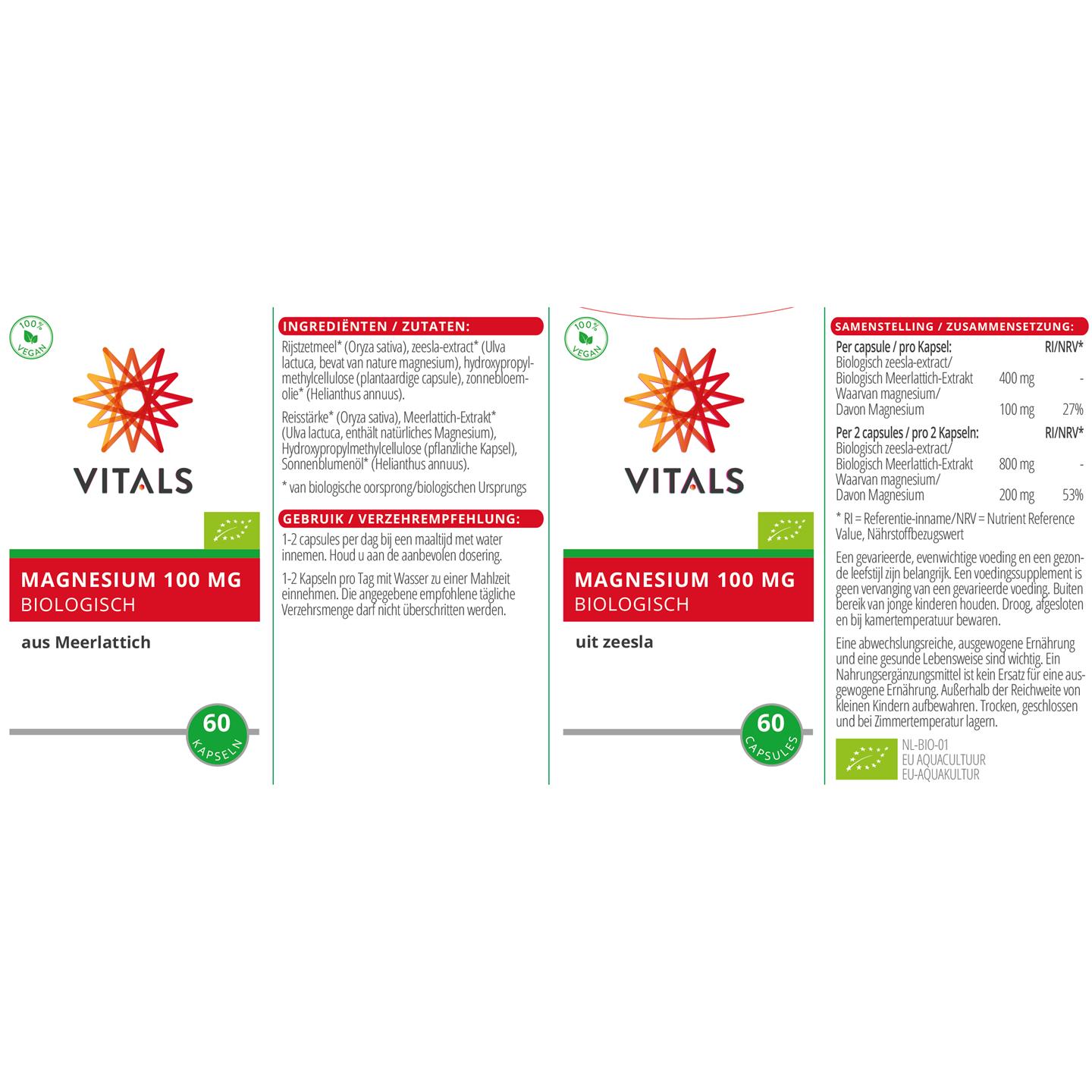 Vitals Magnesium 100 mg Biologisch 60 vcaps