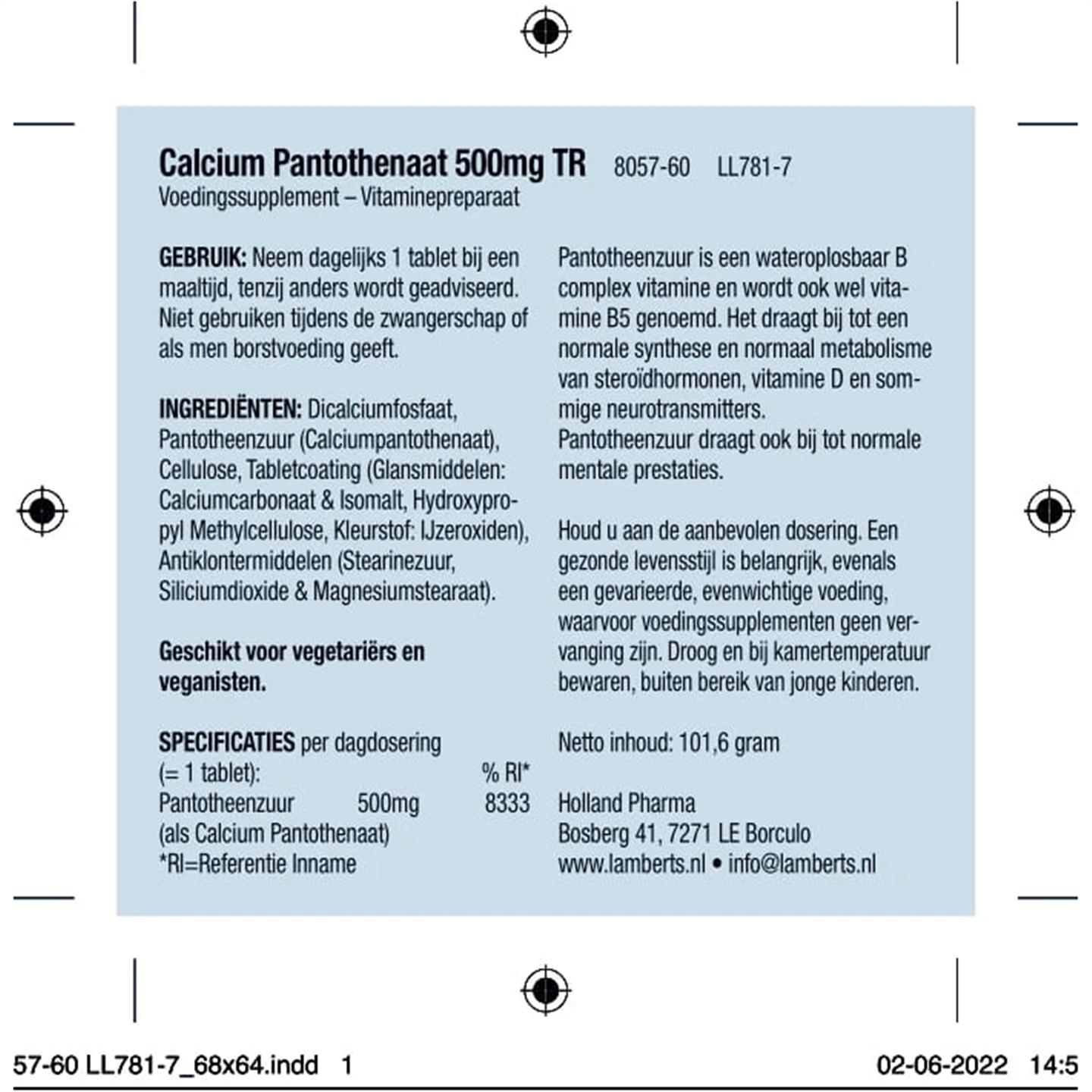 Lamberts Calcium Pantothenaat 500 mg TR 60 tab