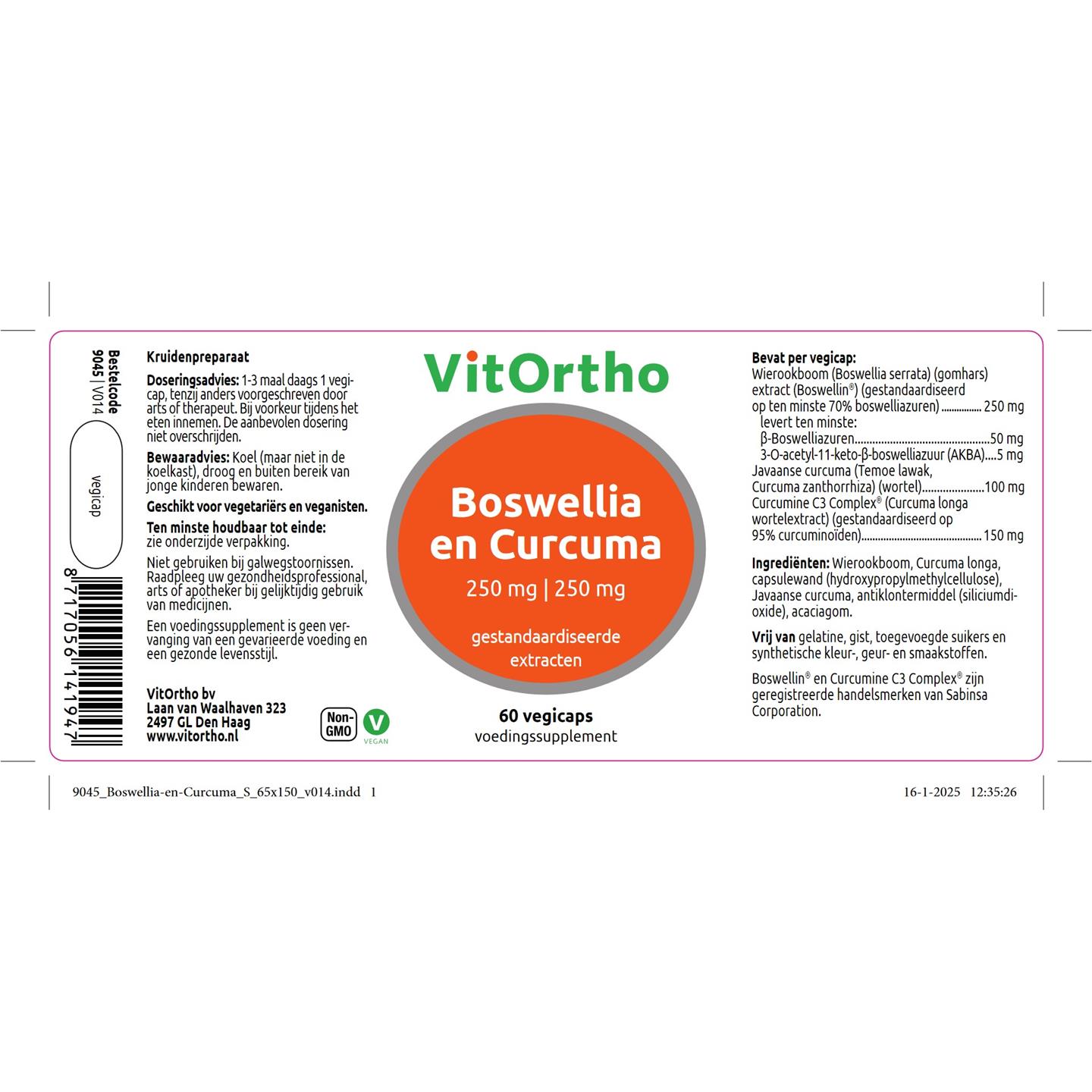 VitOrtho Boswellia 250 mg en Curcuma 250 mg 60 vcaps