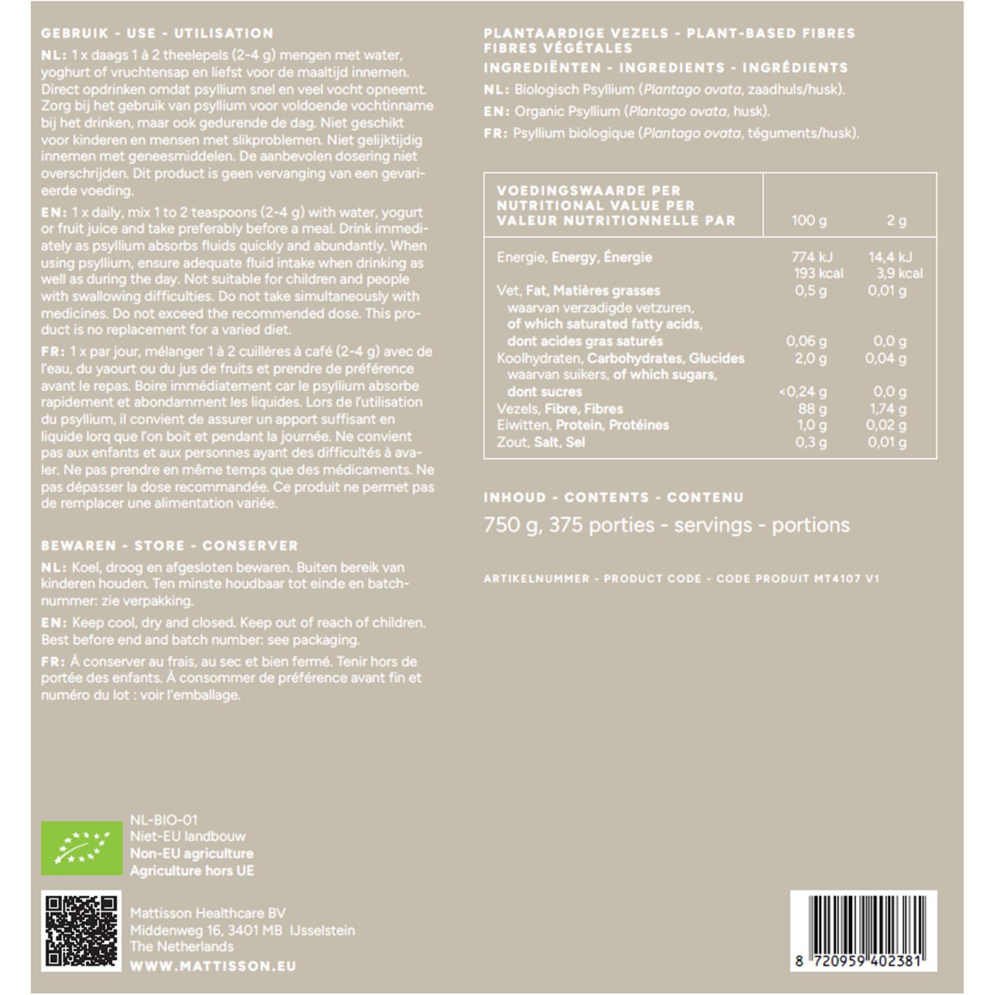 Mattisson Biologische Psyllium Vezels 750 gram