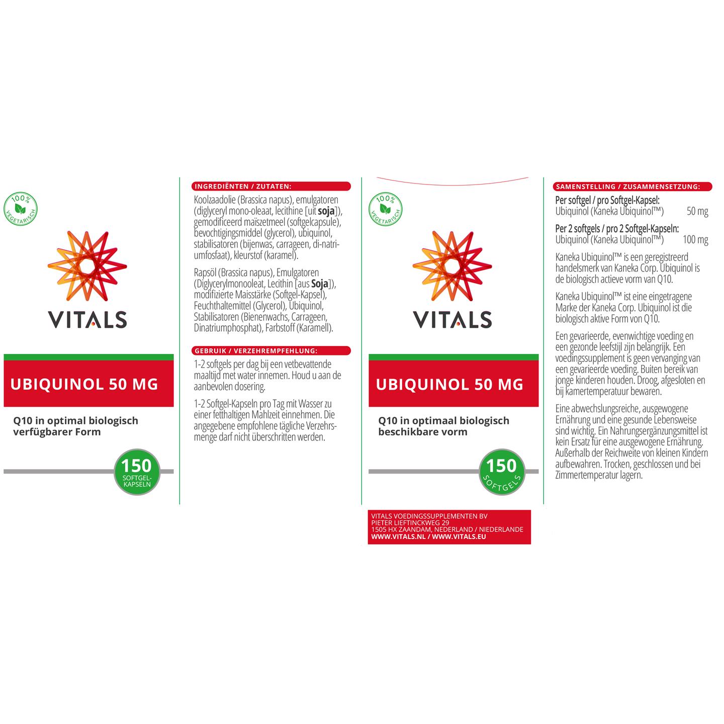 Koolzaad (Brassica napus) olie, Emulgatoren (Diglycerylmono-oleaat, Lecithine, (Soja)), Softgel (Gemodificeerd maïszetmeel), Bevochtigingsmiddel (Glycerol), Ubiquinol (Kaneka Ubiquinol™), Stabilisatoren (Bijenwas, Carrageen, Dinatriumfosfaat), Kleurstof (Karamel).