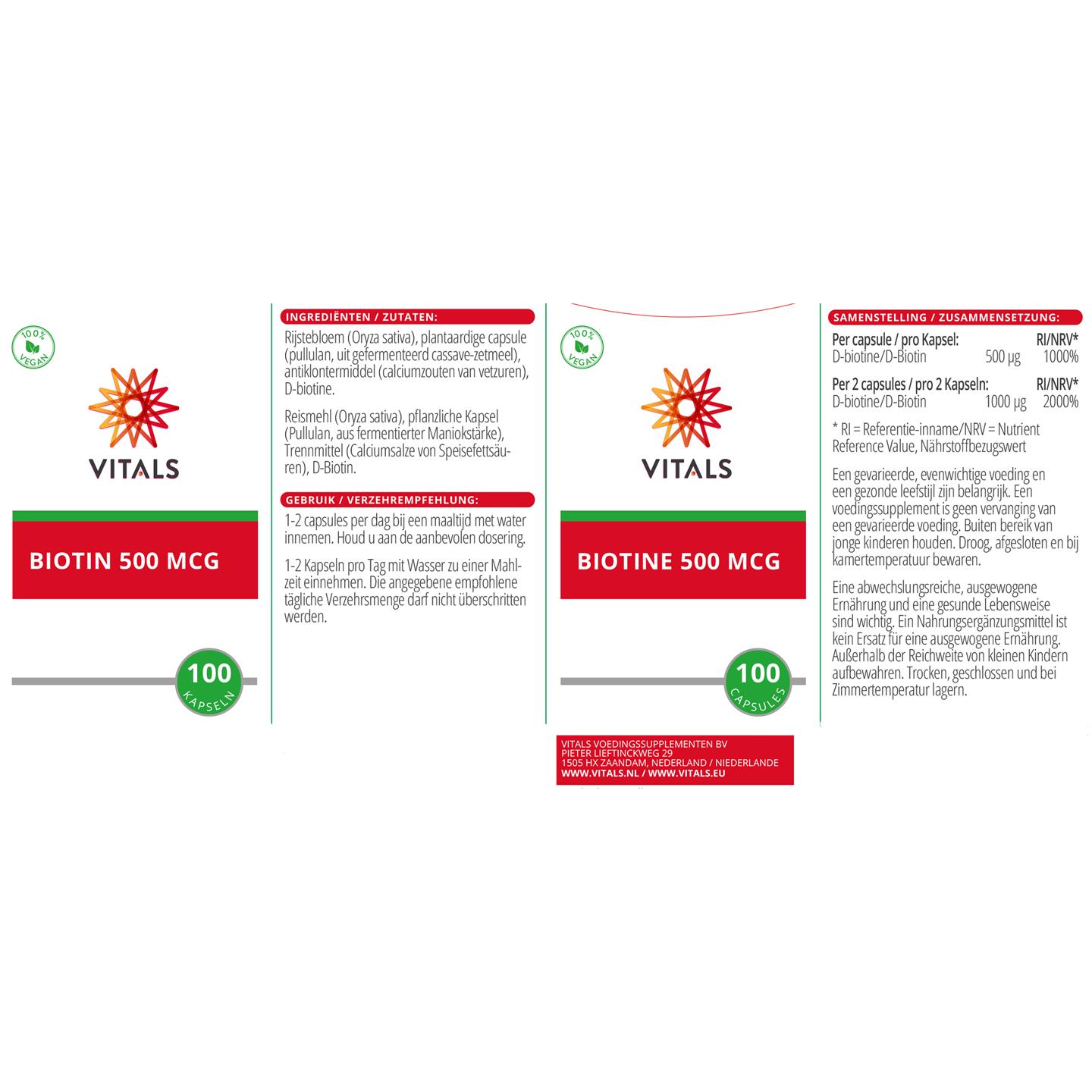 Rijstebloem (Oryza sativa), Vegetarische capsule (Pullulan, uit gefermenteerd cassave-zetmeel), Antiklontermiddel (Calciumzouten van vetzuren), Biotine.