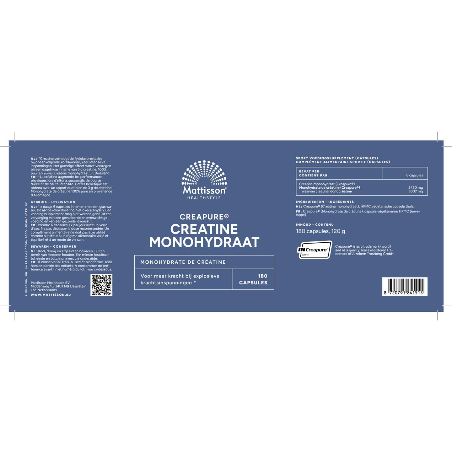 Mattisson Creatine Monohydraat Creapure 180 caps
