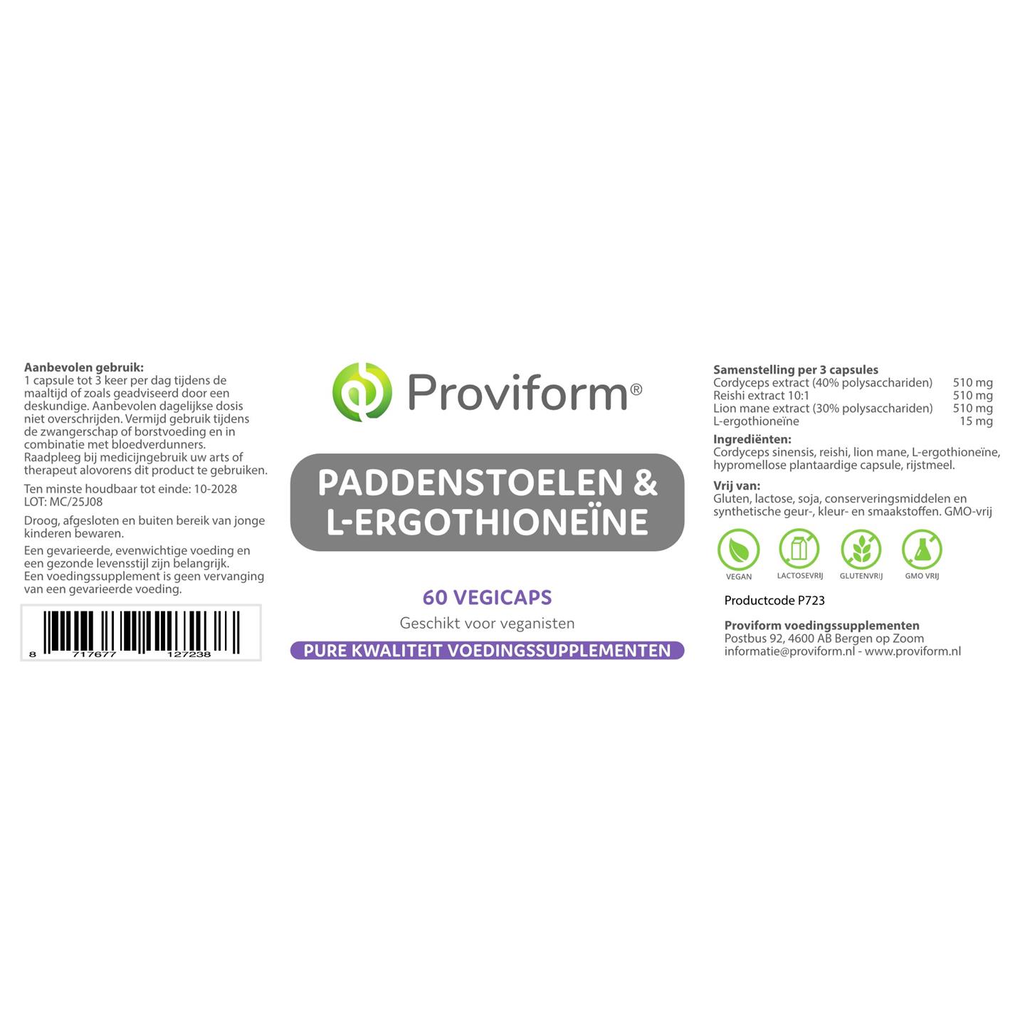 Proviform Paddenstoelen & L-Ergothioneïne 60 vcaps
