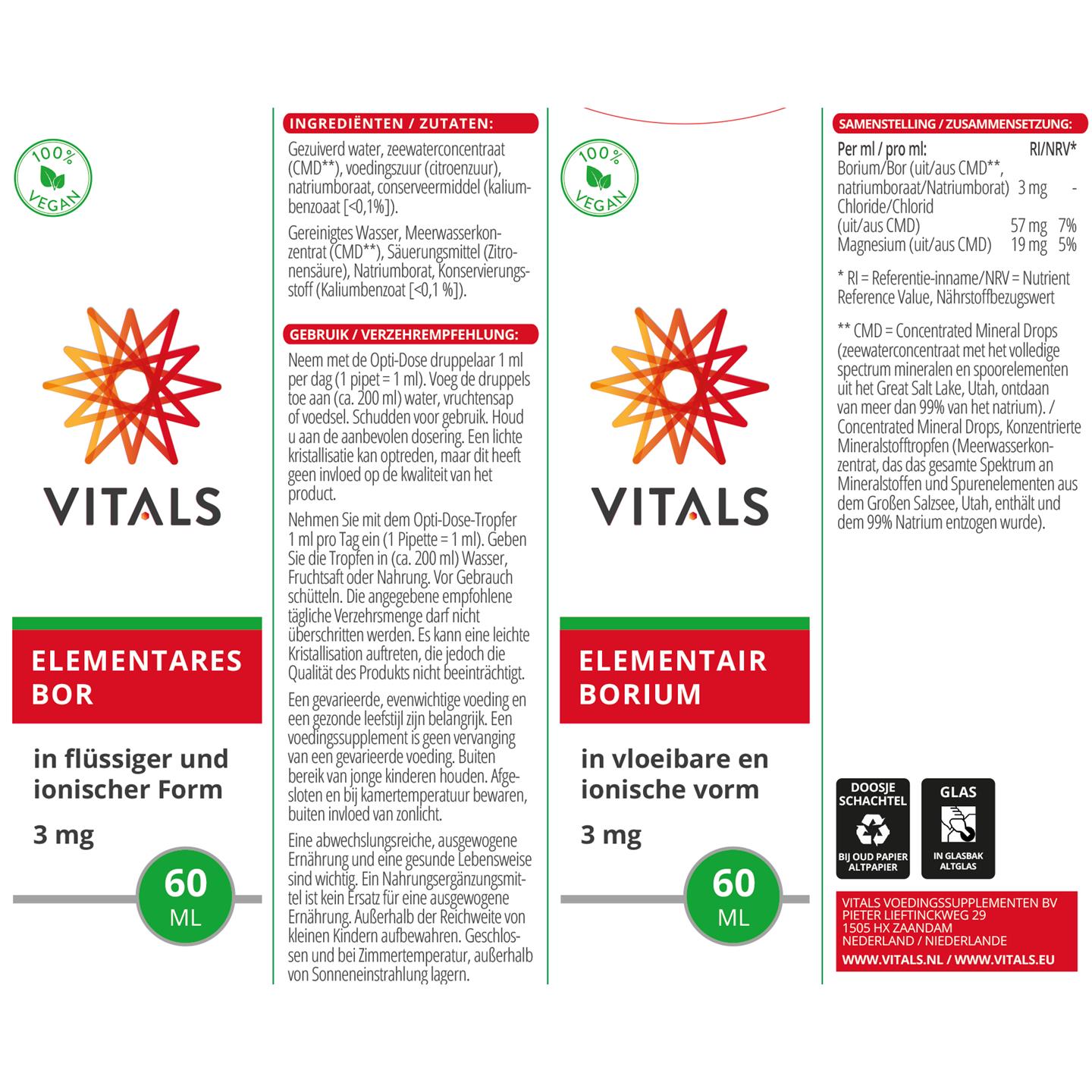 Gezuiverd water, Zeewaterconcentraat (uit concentrated mineral drops), Voedingszuur (Citroenzuur), Natriumboraat, Conserveermiddel (Kaliumbenzoaat (<0,1%)).