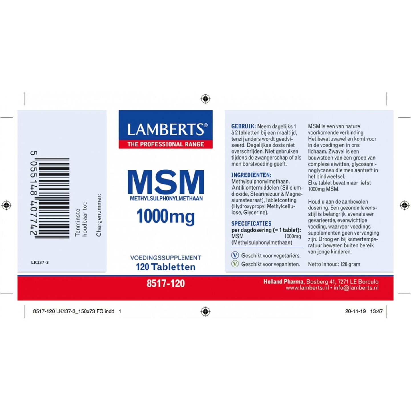Lamberts MSM 1000 mg 120 tab