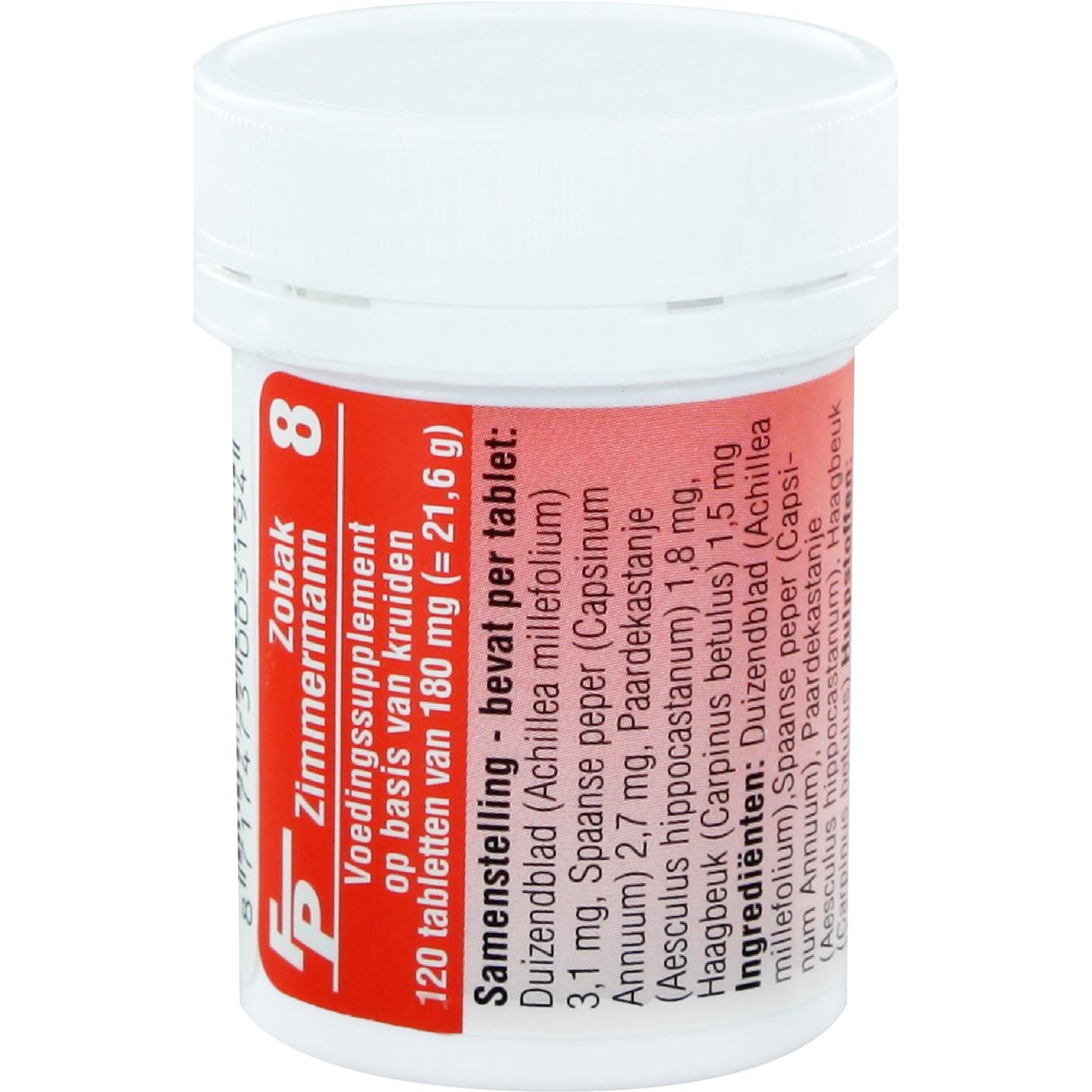 Duizendblad (Achillea millefolium), Spaanse peper (Capsicum annuum), Paardenkastanje (Aesculus hippocastanum), Haagbeuk (Carpinus betulus), Hulpstoffen: Vulstof (Microkristallijne cellulose), Antiklontermiddelen (Stearinezuur, Siliciumdioxide), Smaakstof (Zoethoutextract), Magnesiumstearaat.