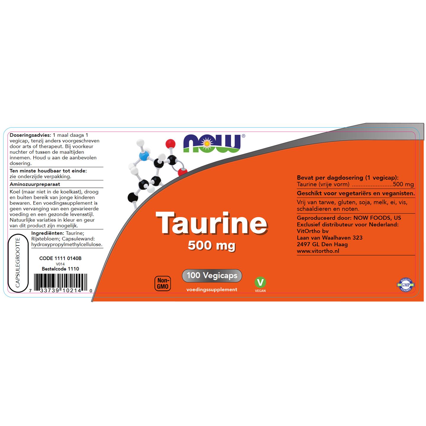 NOW Taurine 500 mg 100 vcaps