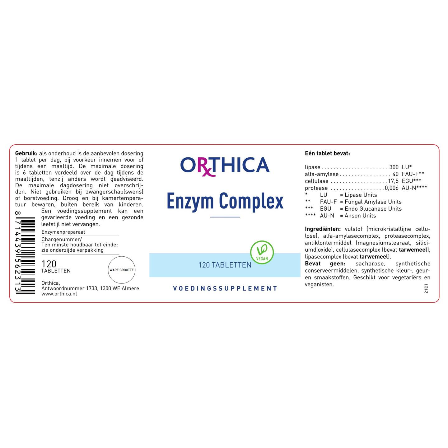Vulstof (Microkristallijne cellulose), Alfa-Amylase complex, Protease complex, Antiklontermiddelen (Magnesiumstearaat, Siliciumdioxide), Cellulase complex (Tarwemeel), Lipase complex (Tarwemeel).