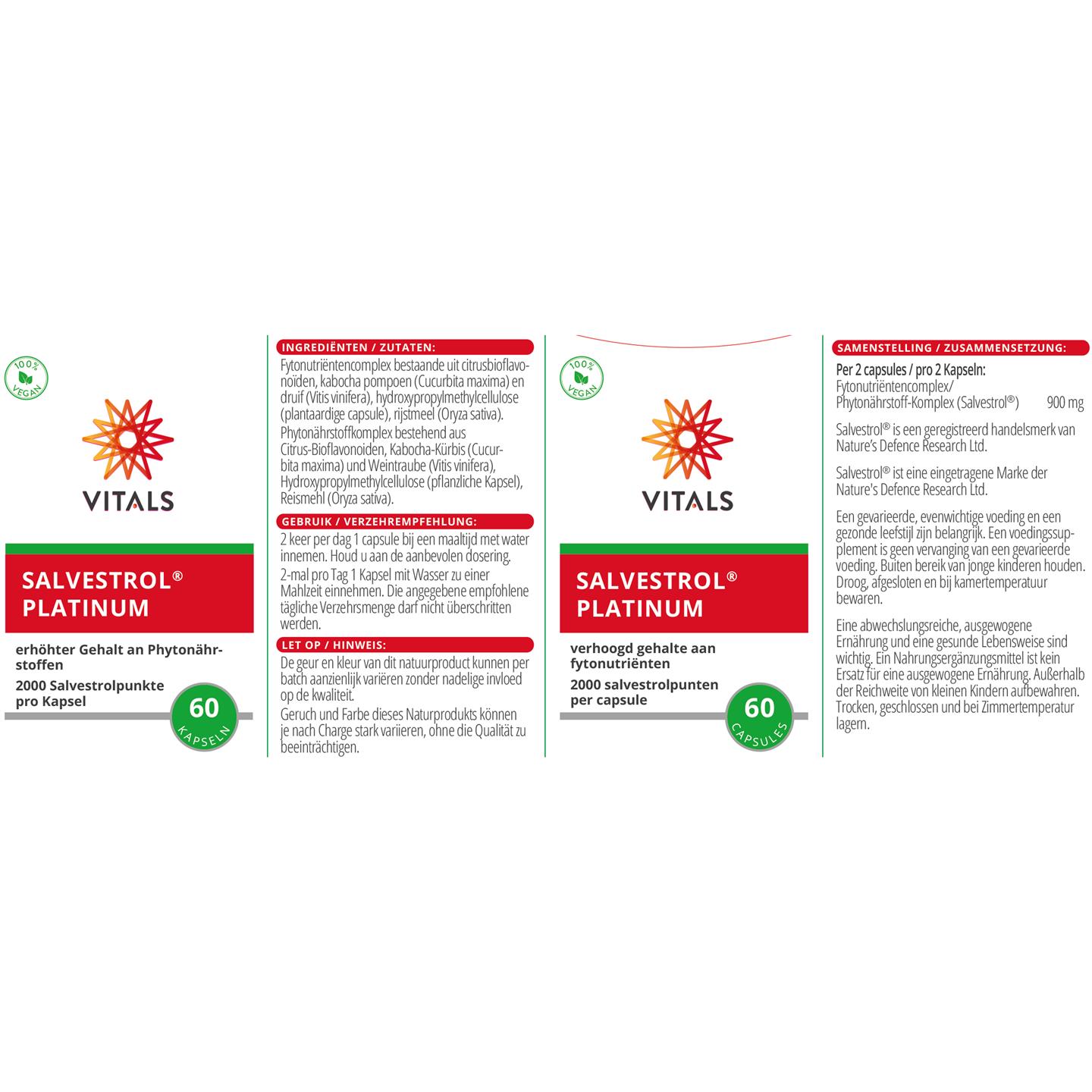 Fytonutriëntencomplex (Salvestrol®) (Citrus bioflavonoïden, Kabocha pompoen (Cucurbita maxima), Druif (Vitis vinifera)), Vegetarische capsule (Hydroxypropylmethylcellulose), Rijstmeel (Oryza sativa).