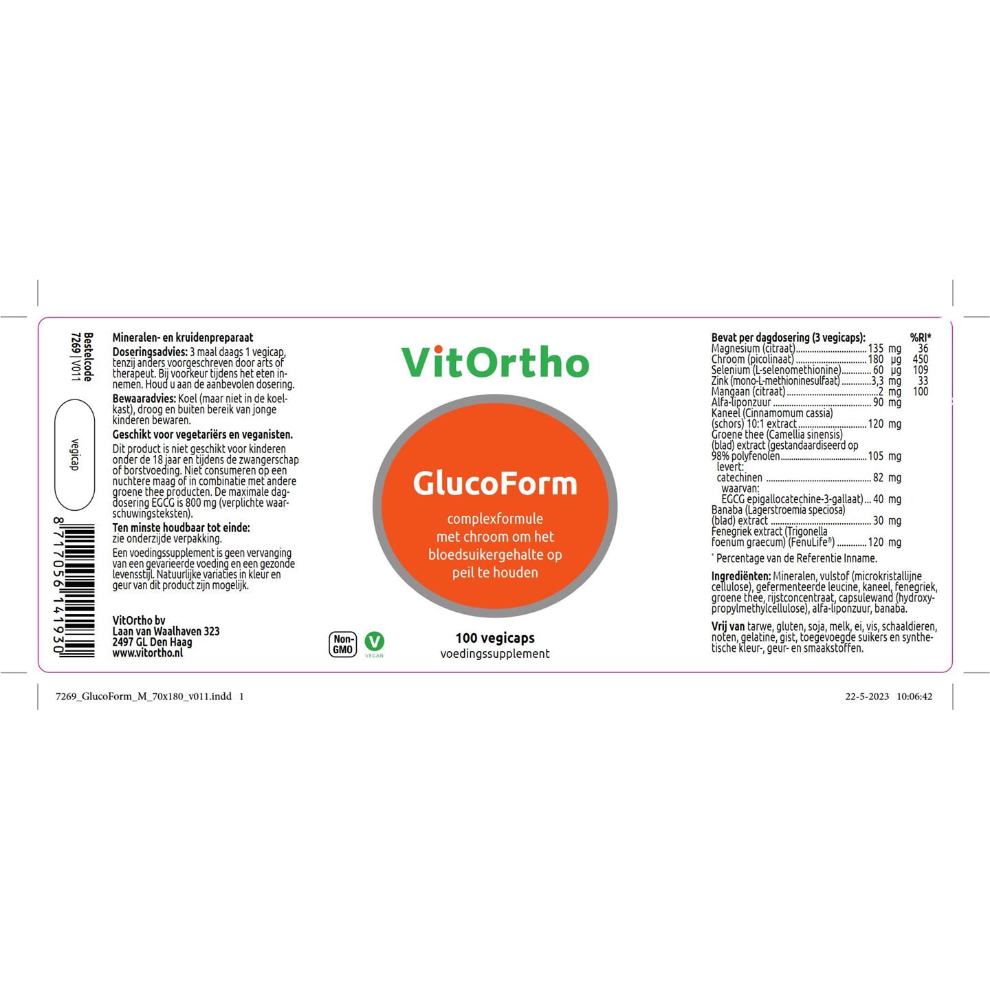 Mineralen, Vulstof (Microkristallijne cellulose), Gefermenteerde L-Leucine, Kaneel (Cinnamomum verum) bast extract, Fenegriek (Trigonella foenum-graecum) (FenuLife®) extract, Groene thee (Camellia sinensis) blad extract, Rijstconcentraat, Capsule (Hydroxypropylmethylcellulose), Alfa-Liponzuur, Banaba (Lagerstroemia speciosa) blad extract.