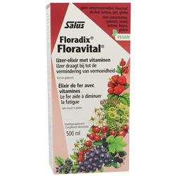 Waterig plantenextract van: (Hibiscus (Hibiscus sabdariffa) bloem, Kamille (Matricaria recutita) bloem, Venkel (Foeniculum vulgare) vrucht, Spinazie (Spinacia oleracea) blad), Mix uit vruchtensap concentraten van (Druif (Vitis vinifera), Peer (Pyrus communis), Zwarte bes (Ribes nigrum) sap, Kers (Prunus cerasus), Braam (Rubus fruticosus), Peen (Daucus carota)), IJzer(II)gluconaat, Waterige extracten uit: (Rozenbottel (Rosa canina)), Vitamine C (ascorbinezuur), Vitamine B2 (natriumriboflavine-5-fosfaat), Vitamine B6 (pyridoxine HCl), Vitamine B1 (thiamine HCl), Vitamine B12 (cyanocobalamine).